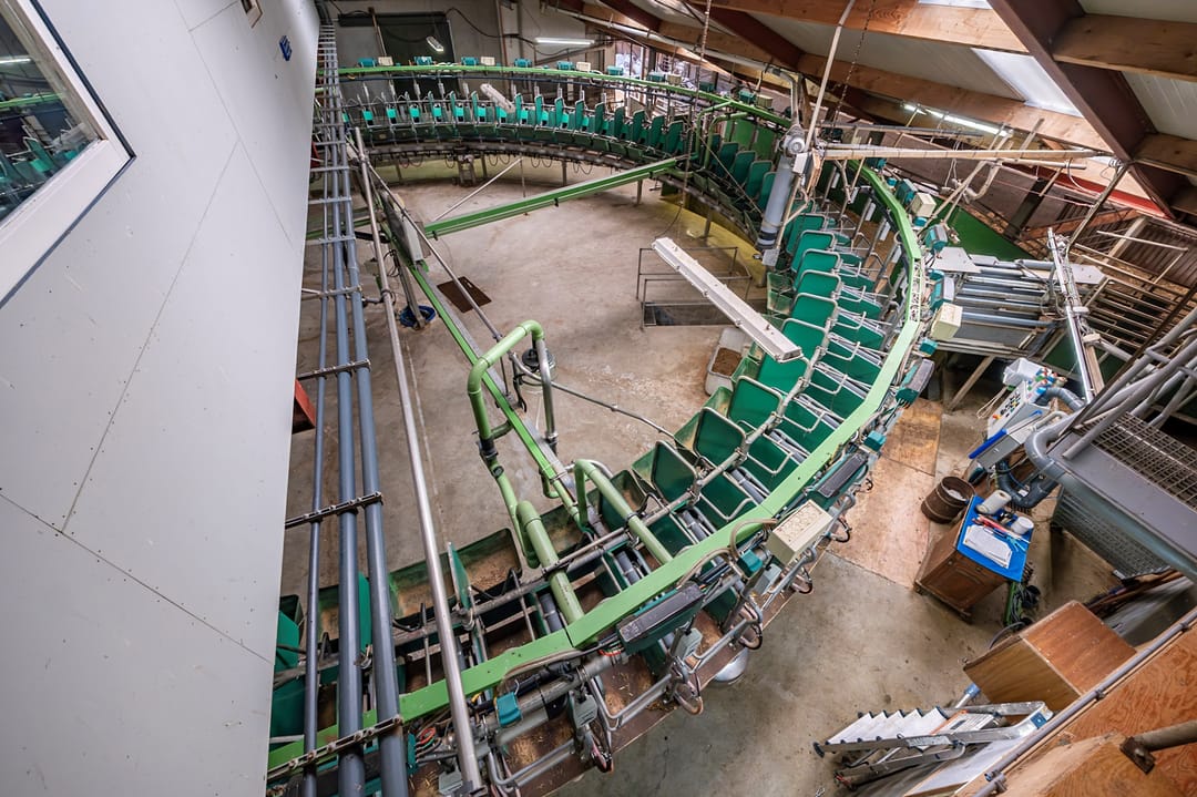 In deze ruimte bevindt zich een carrousel met 72 standen en een melkkoeltank van 18.000 liter inhoud, beide in 2007 geïnstalleerd. De carrousel beschikt over individuele herkenning, melkmeting en een selectiemogelijkheid. De melk wordt deels gekoeld m.b.v. een platenkoeler en warmteterugwinning. De stal beslaat 425 m² en boven de melkstal is een kantoor en skybox aanwezig. Het dak is geïsoleerd met sandwichpanelen.