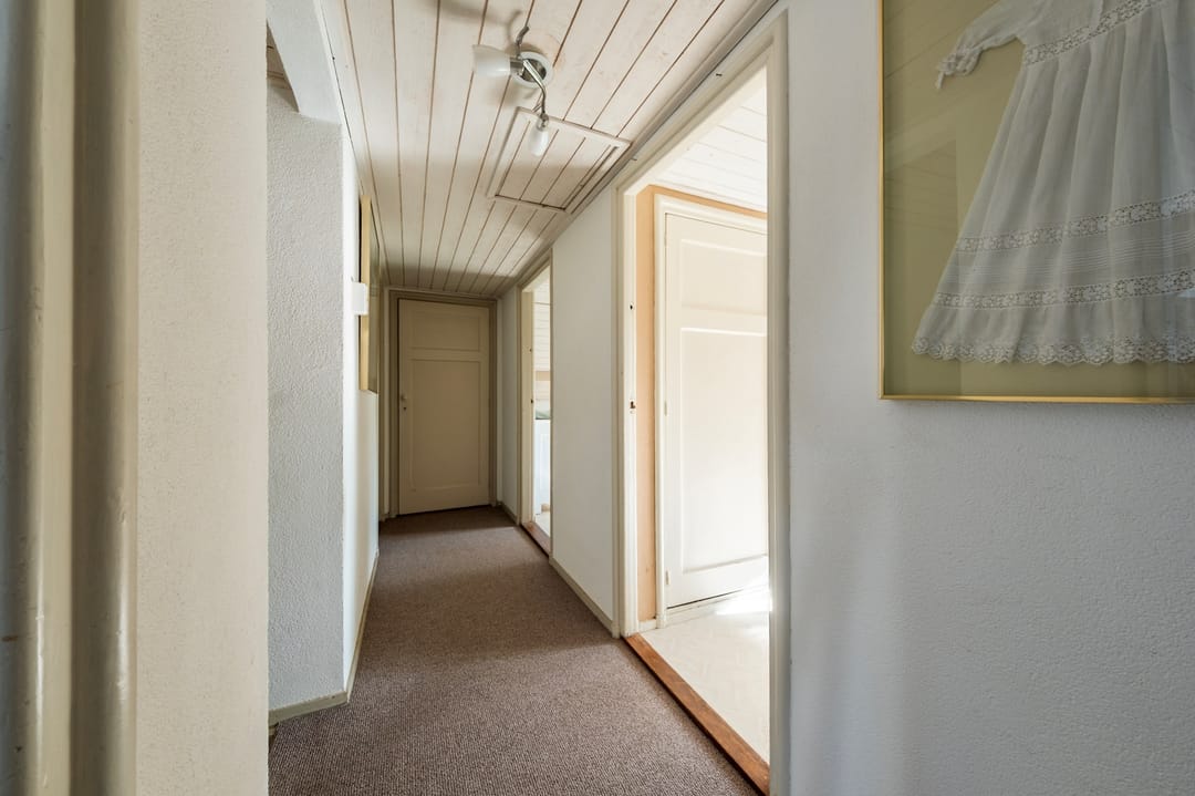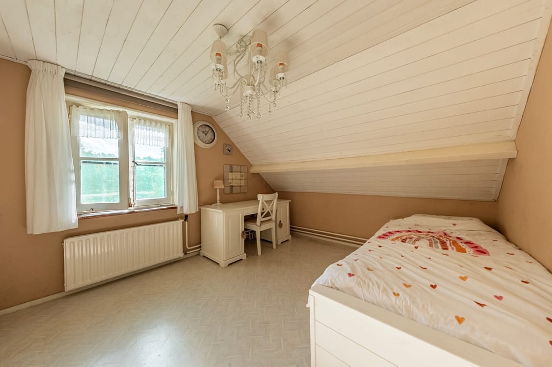 Op de eerste verdieping bevindt zich een badkamer, vier slaapkamers, elk met een eigen karakter en indeling. De centrale overloop verbindt de kamers en biedt toegang tot meerdere opbergruimtes.