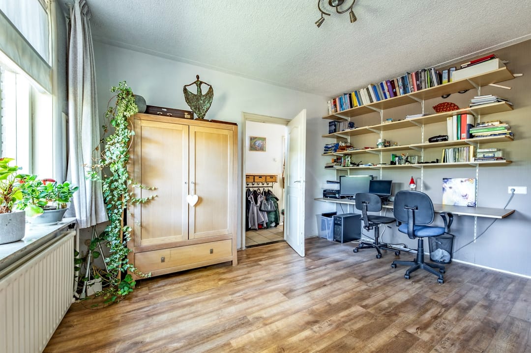 Op de begane grond vindt u een royale woonkamer met veel lichtinval, een eetkamer die aansluit op de keuken, en een achterhuis met directe toegang tot de woning voor extra gemak. Daarnaast bevinden zich hier een kantoor en/of slaapkamer, bereikbaar vanuit zowel de hal als het achterhuis.