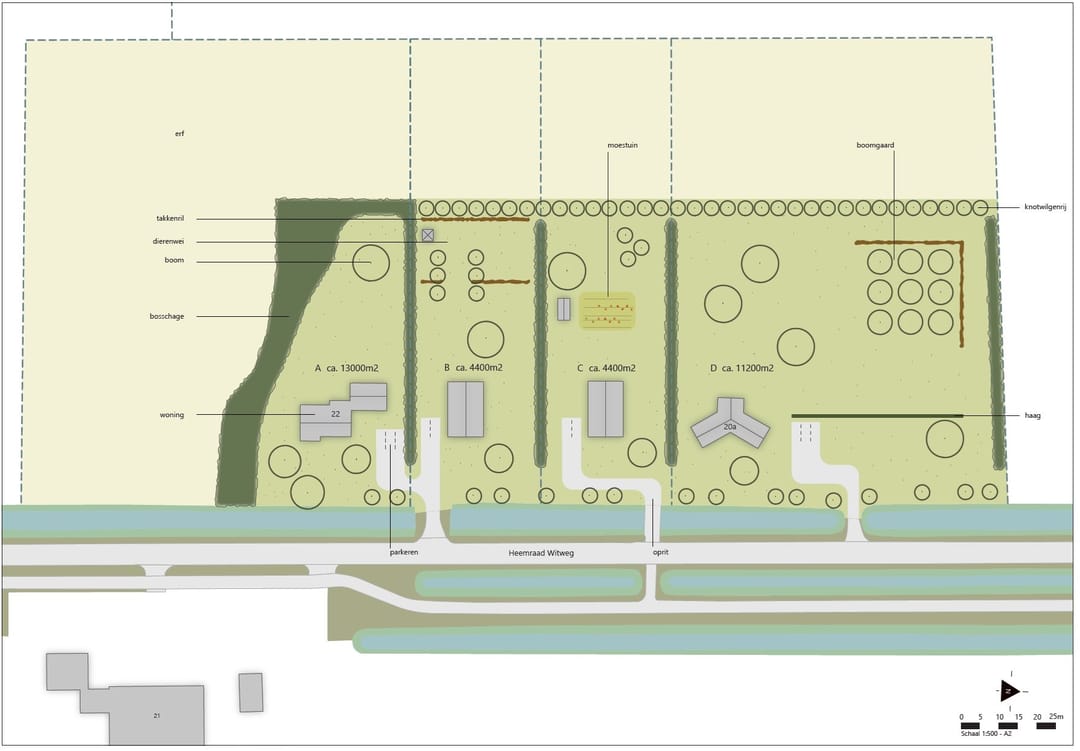 Op basis van een lopende quickscan wordt onderzocht of herontwikkeling mogelijk is naar in totaal vier woonkavels, waarvan de twee bestaande woningen reeds onderdeel uitmaken. Indicatief biedt dit ruimte voor twee aanvullende vrije kavels, uiteraard onder voorbehoud van gemeentelijke medewerking, benodigde onderzoeken en procedures. De resultaten van deze quickscan worden op korte termijn verwacht.