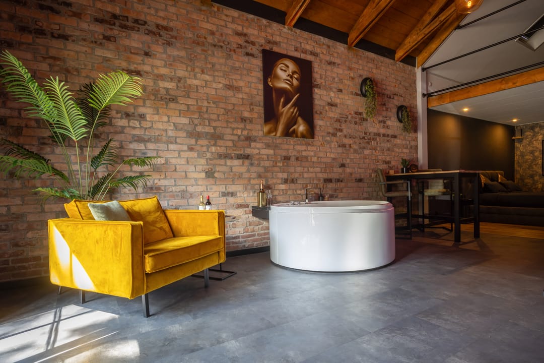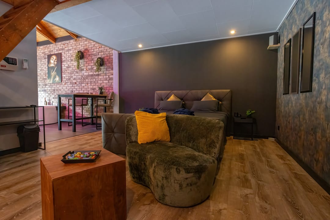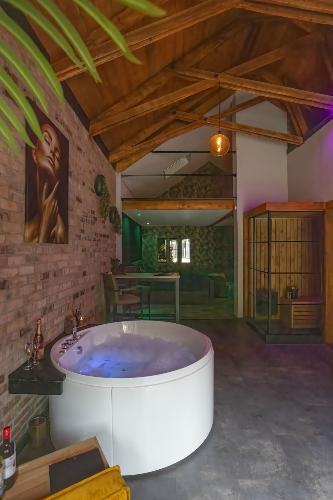 Het gebouw is oorspronkelijk gebouwd als telefooncentrale. Het gebouw is gerenoveerd en daarbij gedeeltelijk voorzien van dakisolatie, evenals elektrische verwarming en airco. Het geheel kent een open indeling met vide en beschikt over meerdere zitgedeelten, een doucheruimte, sauna, vrijstaand ligbad en een toilet. Via een vaste trap is de verdieping bereikbaar, waar zich een naar eigen inzicht te gebruiken ruimte bevindt.