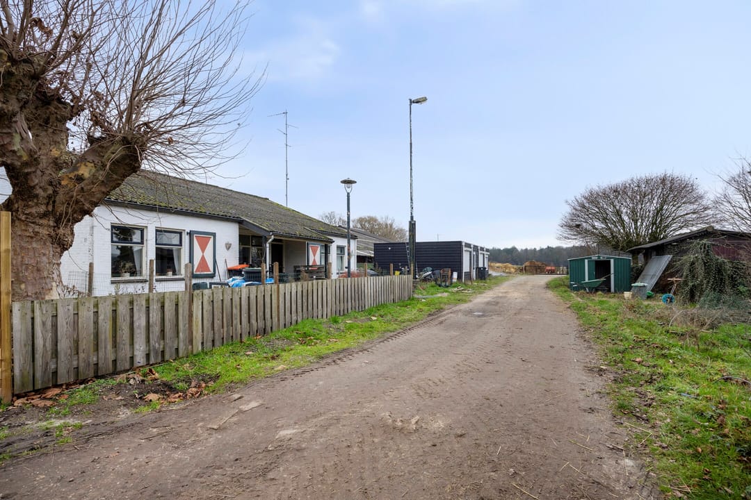 Het erf strekt zich rondom de gebouwen uit en vormt het hart van het geheel. Bij aankomst via één van de twee opritten bereikt u direct het ruime, volledig verharde terrein, uitgevoerd in beton en klinkers. Hier is volop parkeergelegenheid voor auto’s, trailers en bedrijfsvoertuigen, wat de locatie praktisch maakt voor dagelijks gebruik én bezoekers.