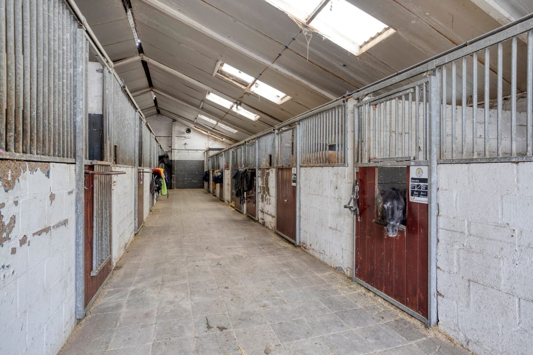 - Paardenaccommodatie met binnenrijbaan (ca. 22 × 42 m) en 43 boxen