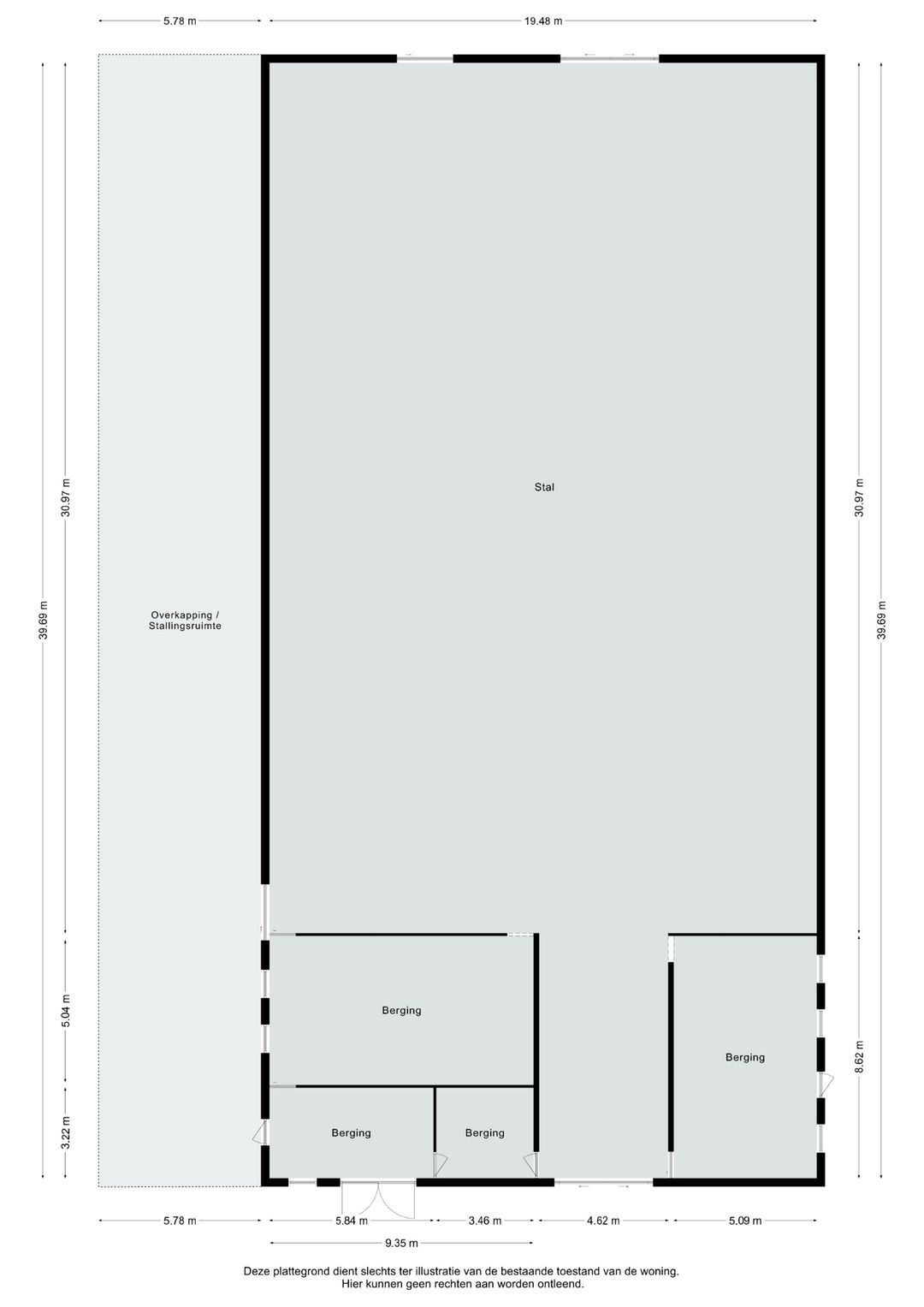 De naastgelegen bedrijfsruimte/loods is eveneens als het woonhuis traditioneel gebouwd en opgetrokken in metselwerk (spouw). De loods betreft een voormalige ligboxenstal, is vrij overspannen, voorzien van een nieuw dak (in 2018) en heeft een oppervlakte van