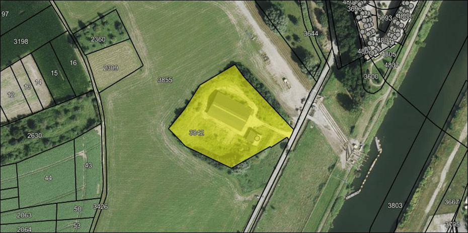 Het object is kadastraal bekend als gemeente Stein, sectie A, nummer 3842 ter grootte van 0.79.20 ha. (7.920 m²).