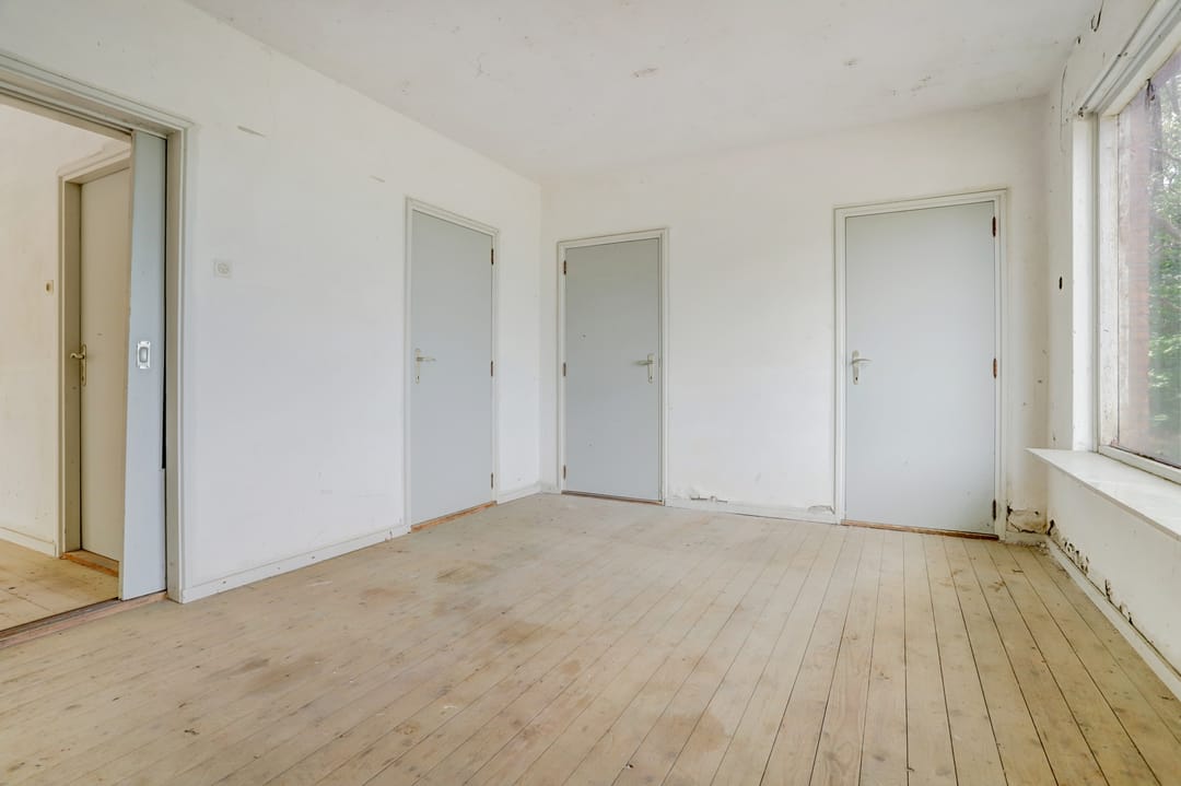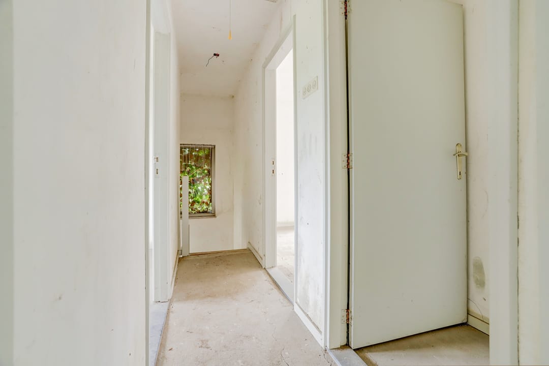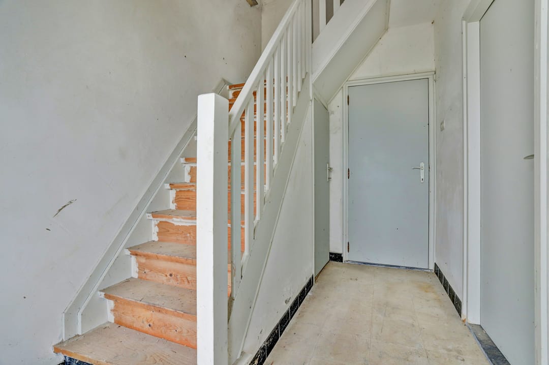 Je betreedt de woning via de hal, waar zich de meterkast, een trapkast en de vaste trap naar de eerste verdieping bevinden. Vanuit de hal stap je binnen in de woonkamer.