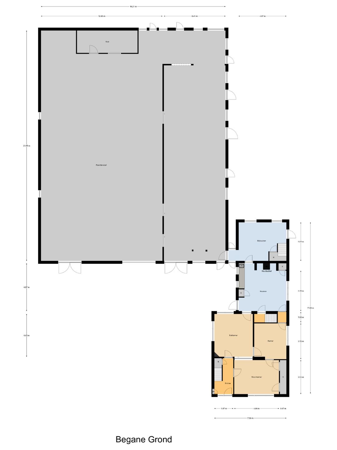 Afmetingen: ca. 24 m x 19.30 m (binnenwerk)