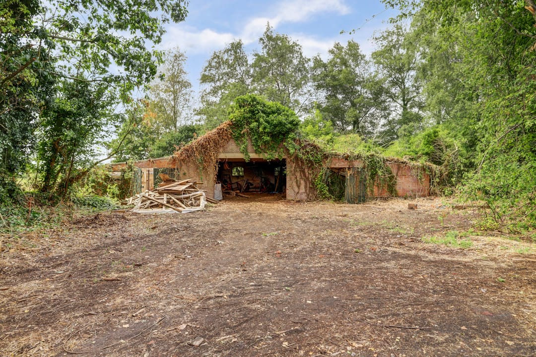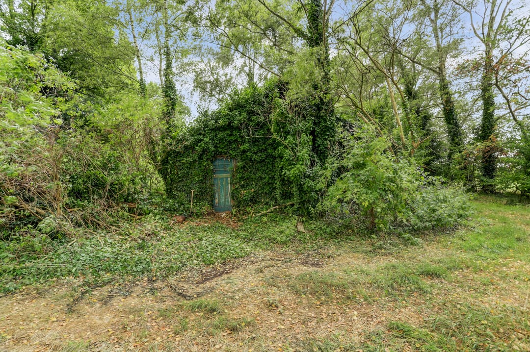 Het betreft een voormalige noodwoning welke helemaal ingegroeid is in het struikgewas.