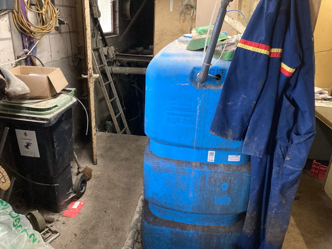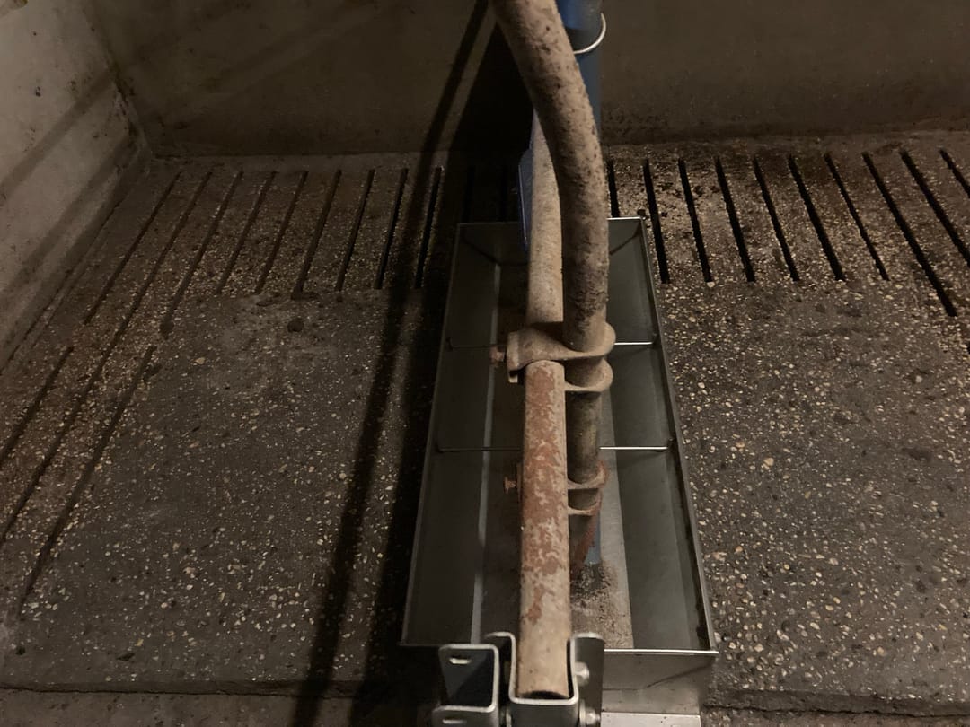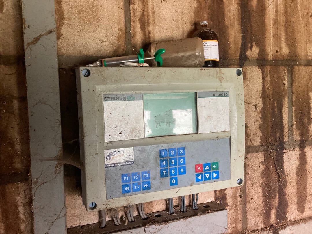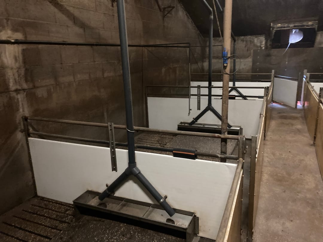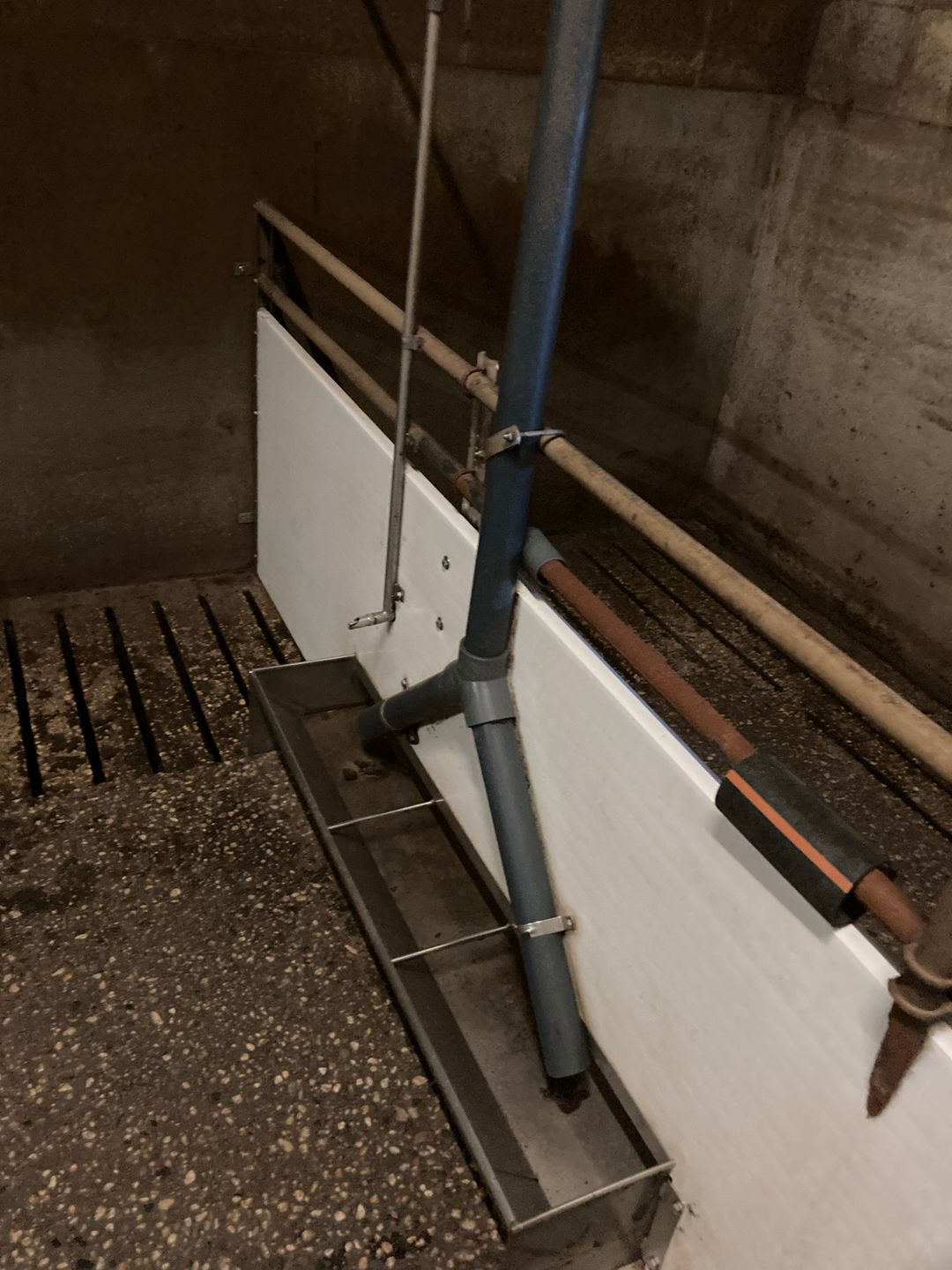 Voersysteem: Rvs trog met drinknippel in de trog. Brijvoerinstallatie, gerenoveerd in 2011 (Weda)