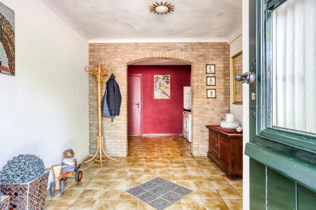 • het dak is gedekt met gebakken pannen en voorzien van dakisolatie.