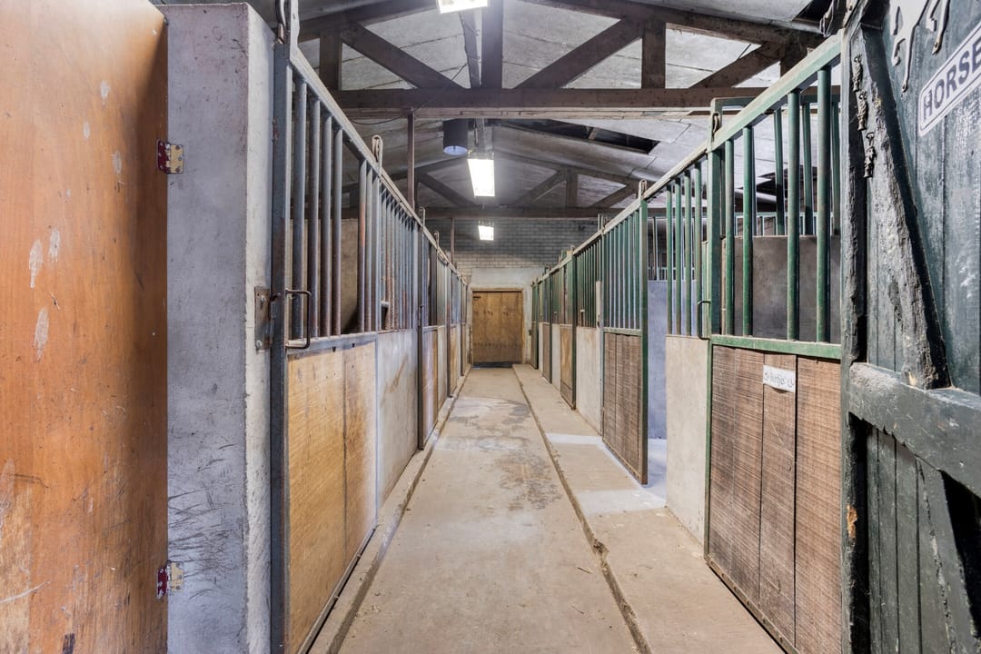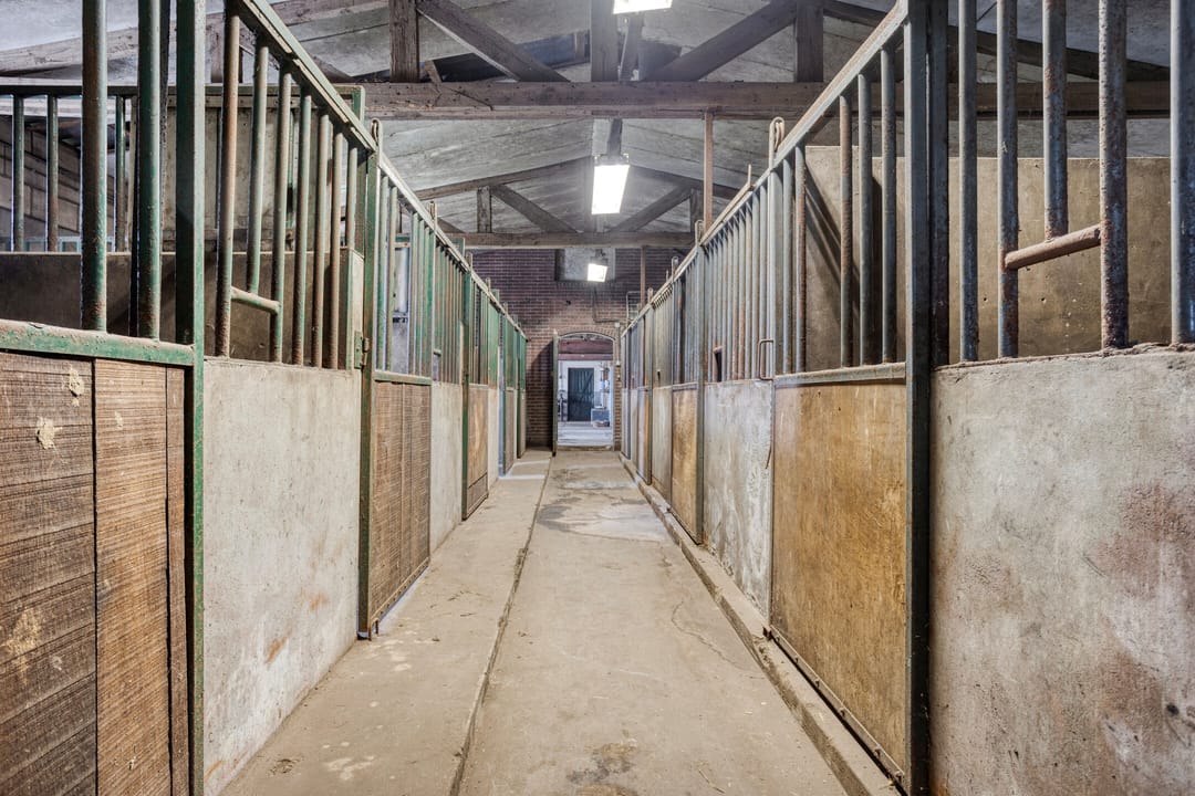 • 9 paardenboxen ( boxdeuren voorzien hardhouten planken en asbesthoudende plaat).