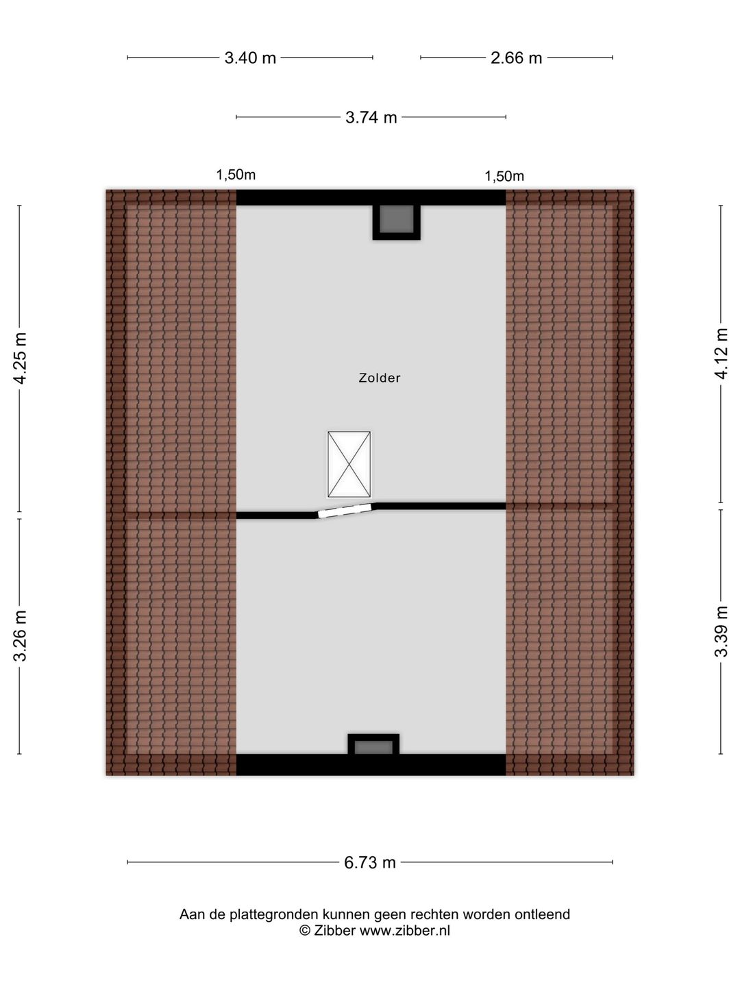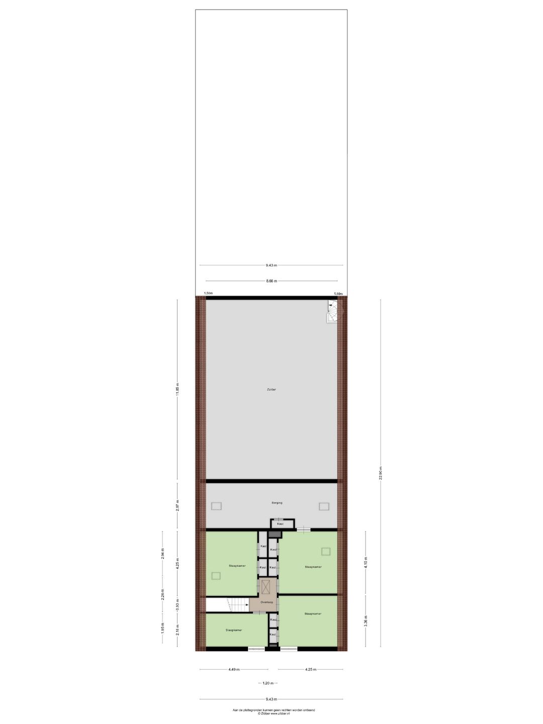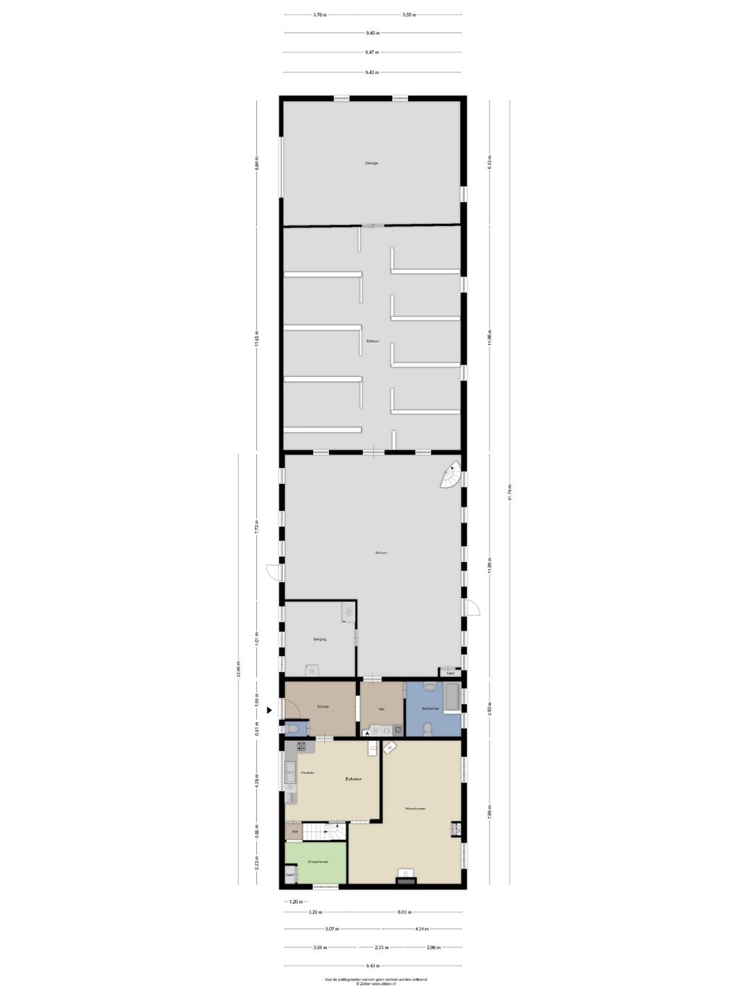 • afmetingen circa 4,30 m x 5,50 m = oppervlakte circa 24 m², goothoogte 1,50 m, nokhoogte 3,00 m.