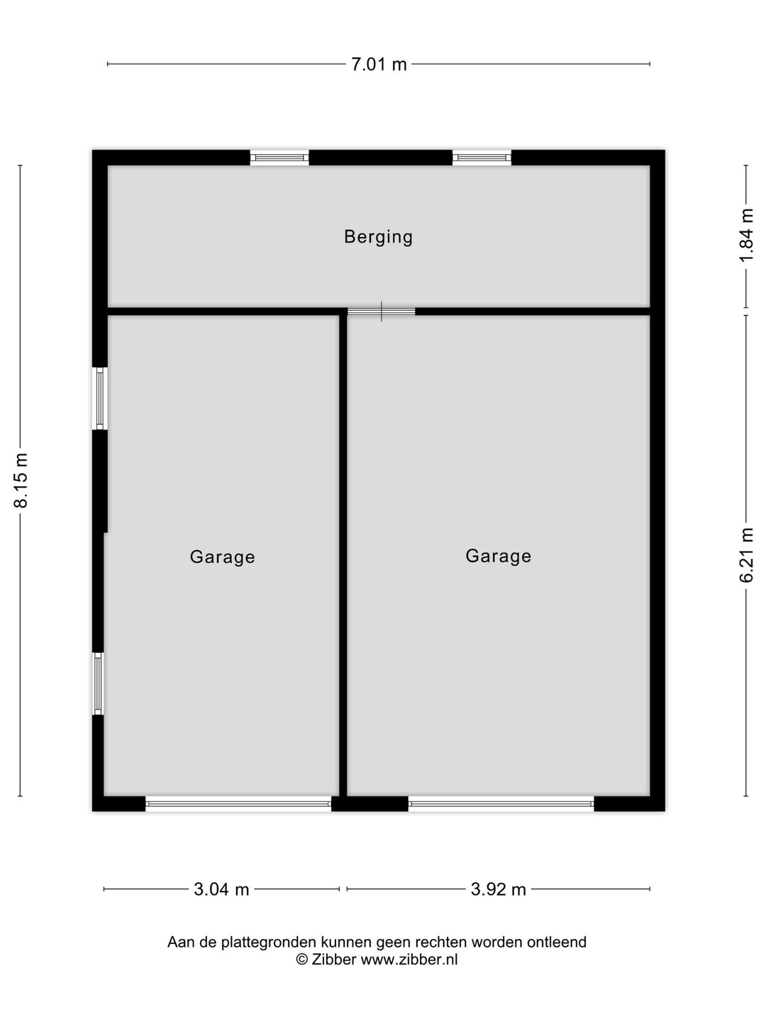 • afmetingen circa 7,00 m x circa 8,15 m = oppervlakte circa 57 m², goothoogte 2,00 m, nokhoogte 3,00 m.