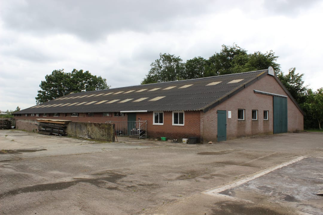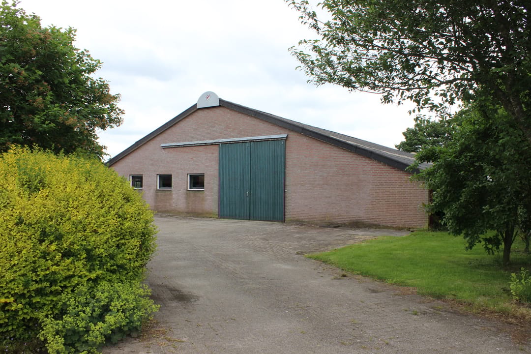 Betreft een voormalige ligboxenstal. Gebouw opgetrokken in halfsteens muren en voorgevel als spouwmuur, gedekt met cementvezel golfplaten gedekt (2000) niet geïsoleerd, rustend op houten gebogen spanten. Betonnen vloer gedeeltelijk rooster met ondergrondse mestopslag ca 400m³. Voorzien van schuifdeur.