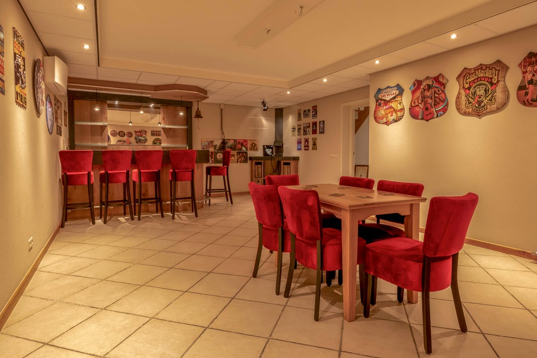 Een vaste trap biedt toegang tot de onderkelderde ruimte onder de woning. Deze kelder bestaat uit meerdere ruimtes, waaronder een 'mancave/café', een speelkamer/chillruimte en een praktische provisiekelder. De veelzijdigheid van deze ruimtes biedt talloze mogelijkheden en zorgt bovendien voor veel extra leef- en opslagruimte in de woning. De mancave/café is afgewerkt met een tegelvloer voorzien van vloerverwarming, stucwerk wanden en een plafond dat deels voorzien is van een systeemplafond en deels van stucwerk. De ruimte is uitgerust met airconditioning, wat bijdraagt aan het comfort. Deze ruimte leent zich perfect voor het organiseren van feestjes of gezellige bijeenkomsten. De speelkamer/chillruimte is afgewerkt met een tegelvloer voorzien van vloerverwarming, spachtelputz wanden en een stucwerk plafond. Deze veelzijdige ruimte biedt volop mogelijkheden en kan gemakkelijk worden ingericht voor diverse andere doeleinden, zoals een hobbykamer, thuiswerkplek of fitnessruimte. In deze ruimte zijn ook de warmtepomp, de glasvezel aansluting, de meterkast met waterontharder en de unit voor de vloerverwarming gesitueerd. De ruime provisiekelder is afgewerkt met een tegelvloer, metselwerk wanden en een stucwerk plafond. Praktische schappen zorgen voor bergruimte. De toiletruimte is geheel betegeld en verder uitgerust met een toilet (Sanibroyeur) en een fonteintje.