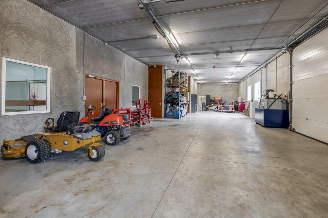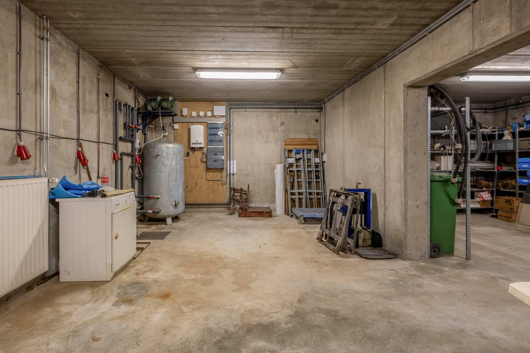 De begane grond is voorzien van een betonnen vloer en uitgerust met praktische voorzieningen zoals een gootsteen en twee laadpalen voor elektrische auto’s. In de kelder bevinden zich de beregeningsinstallatie, de meterkast, krachtstroomaansluiting, de omvormer voor de zonnepanelen én een voertuigen/goederenlift. Op de zolder bevindt zich de CV-ketel (Nefit Smartline HR). Bovenop de garage zijn zonnepanelen geïnstalleerd, wat bijdraagt aan duurzaamheid en energiebesparing. Deze garage biedt niet alleen veel ruimte en functionaliteit, maar ook moderne gemakken.