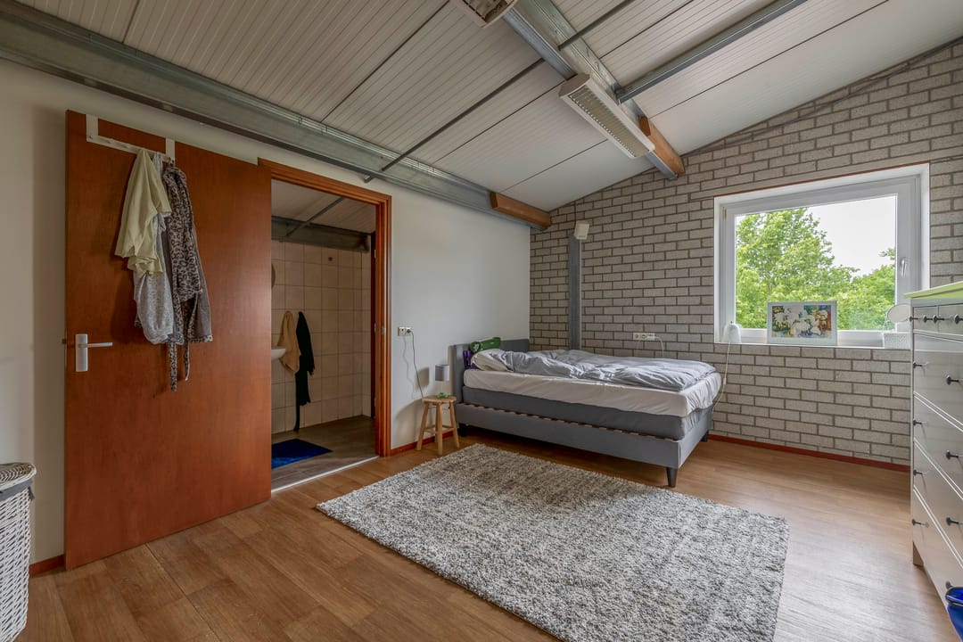 De ruime overloop met vide biedt toegang tot 3 slaapkamers, een badkamer en een technische/stookruimte. In de technische ruimte is het stofzuigsysteem, de WTW-installatie en de boiler gesitueerd. Slaapkamer I en III zijn beiden voorzien van een laminaatvloer, spuitwerk wanden en een spuitwerk plafond. In beide ruimtes is bergruimte gecreëerd onder de dakschuinte door middel van praktische schuifkasten. Twee ramen in de kopgevel zorgen voor natuurlijke lichtinval. Slaapkamer II is eveneens voorzien van een laminaatvloer, spuitwerk wanden en een spuitwerk plafond. Een dakkapel zorgt voor natuurlijke lichtinval en ventilatie in de ruimte. De ruime, geheel betegelde badkamer is uitgerust met een ligbad, wastafel met wastafelmeubel, douche, toilet en een designradiator. Een praktisch pluspunt van deze badkamer is de handige stortkoker voor de was. De koker mondt uit in de keuken, waardoor de vuile was direct beneden terechtkomt, dicht bij de wasapparatuur. Dit maakt het doen van de was een stuk efficiënter en zorgt voor extra gemak.