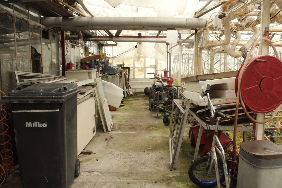 - Het gedeelte met bouwjaar 1980 is circa 61 m breed en circa 63 m lang, heeft een betonnen middenpad en halverwege een betonnen dwarspad, de goothoogte is circa 2,80 m en de vakmaat 3 m.
