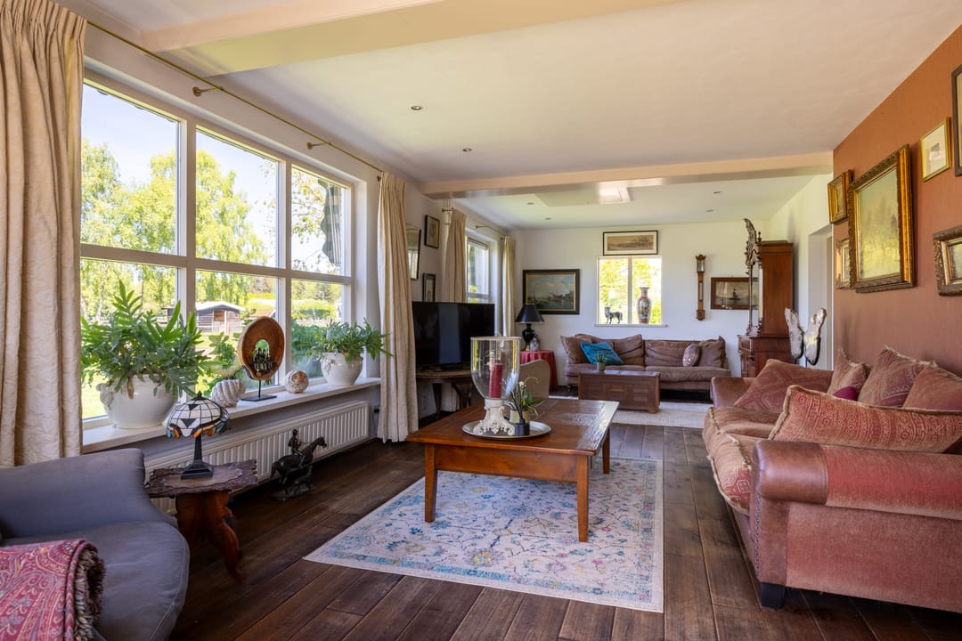 Kortom hier ervaart u iedere dag weer rust, ruimte en vrijheid. U voelt zich verbonden met het landschap en de rust van het buitenleven. De sfeervolle woonkeuken is het warme hart van het huis, waar familie en vrienden samenkomen. Ook de stallen en weilanden maken het ideaal voor het houden van bijvoorbeeld paarden, met volop ruimte voor verzorging en beweging. Het nabijgelegen natuurgebied “Landgoed Geerestein” is bij uitstek geschikt voor het maken van lange wandelingen of fietstochten. Dit huis is een droomplek voor wie op zoek is naar rust, ruimte en een plek met eindeloze mogelijkheden.