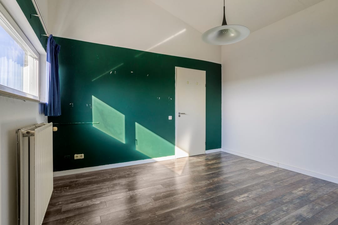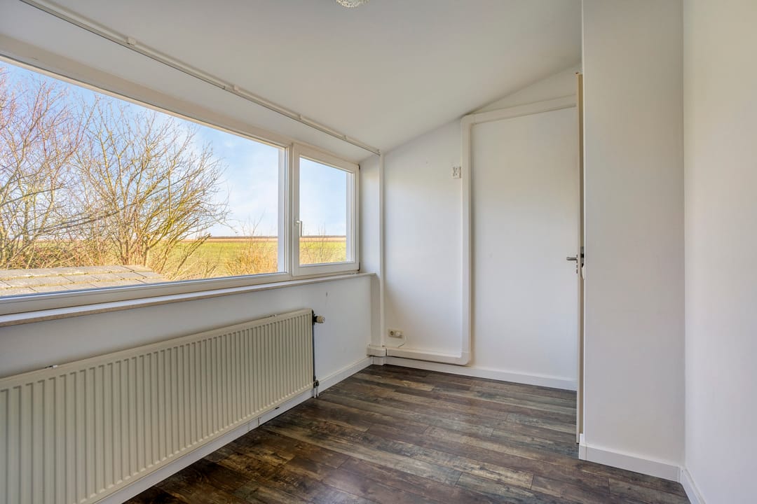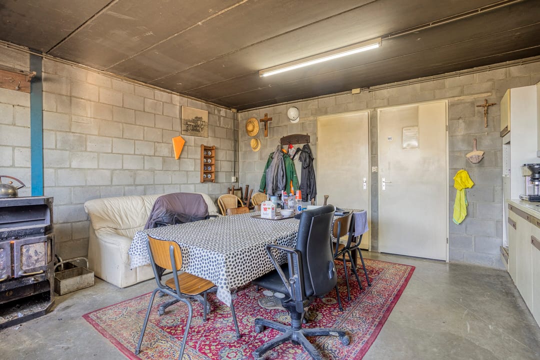 Aangrenzend aan de keuken bevindt zich een (kantoor)ruimte, die tevens toegang biedt tot de achterentree. Vanuit deze achterentree is er een overdekte verbinding naar de bedrijfsloods. De ruimte beschikt over grote raampartijen, waardoor een prettig natuurlijk licht binnenvalt. De afwerking bestaat uit dezelfde leistenen vloer en gestucte wanden.