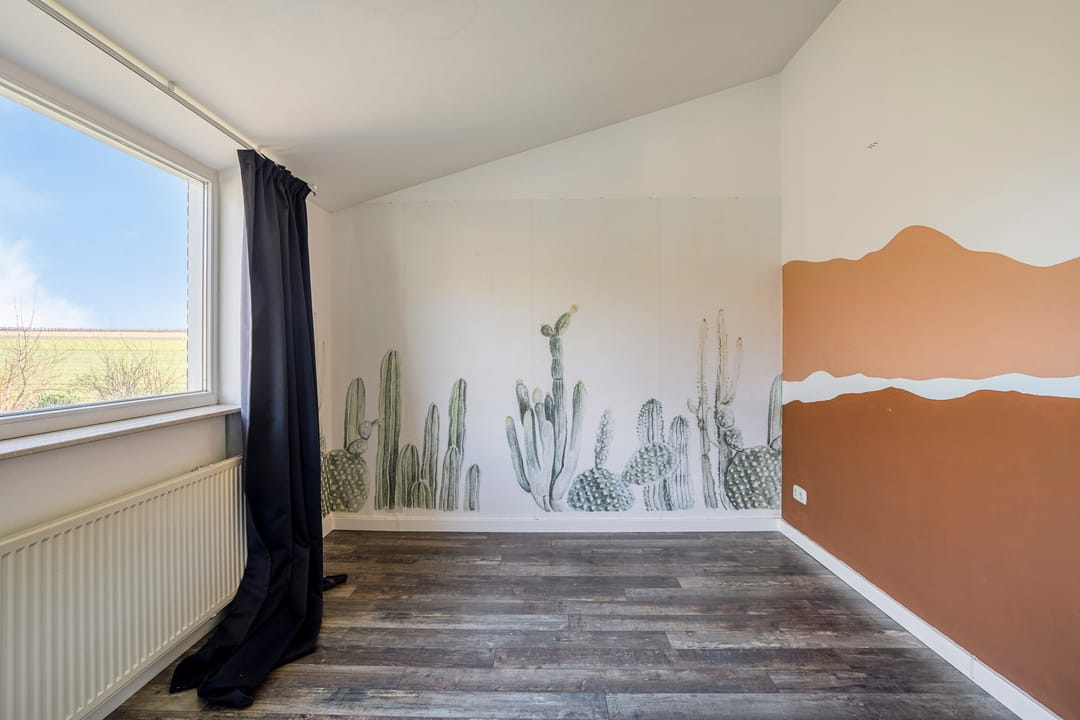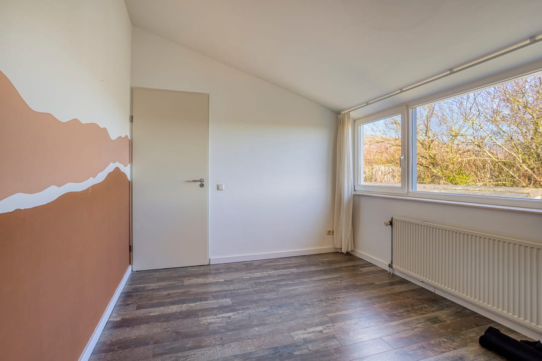 De slaapkamers en overloop zijn uitgevoerd met een betonnen dek met laminaatvloer en strak gestucte wanden. De slaapkamers worden verwarmd middels radiatoren. Op de overloop bevindt zich een airco-installatie die de gehele verdieping kan koelen tijdens warme zomerdagen.