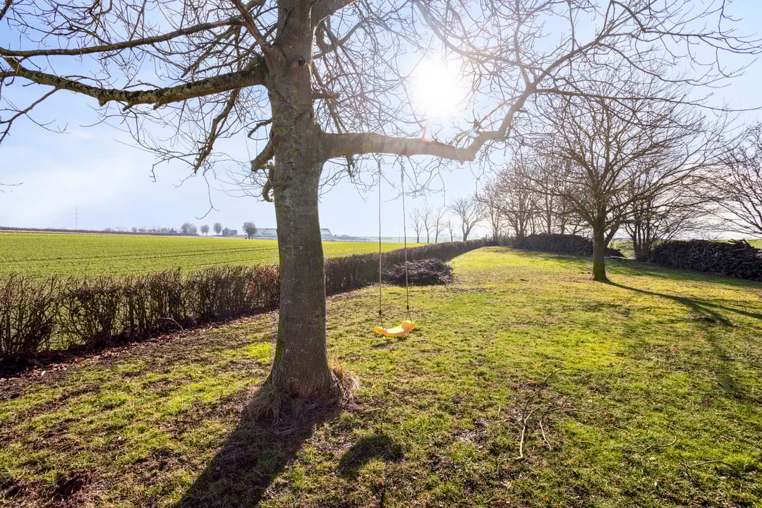 De woning wordt omgeven door een royale, natuurlijke tuin met diverse boomopstanden en een omheining van een natuurlijke haag. De tuin is rijk aangekleed met verschillende beplantingen van bloemen en planten, wat zorgt voor kleur en variatie gedurende het hele seizoen. Op het perceel bevindt zich tevens een weide met (voormalige) schuilstal, deze voorheen dienst deed voor het houden van bijvoorbeeld kleine gezelschapsdieren zoals pony's, schapen of geiten. De tuin is speels vormgegeven met niveauverschillen, wat zorgt voor een levendige en karaktervolle buitenruimte. Rondom de woning liggen meerdere terrassen, perfect om tijdens voorjaars- en zomerdagen te genieten van de zon én het prachtige uitzicht over het omliggende heuvellandschap.