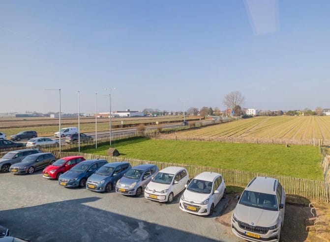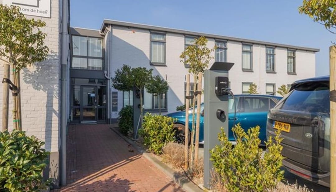 Aan de achterzijde van het pand bevindt zich een ruim parkeerterrein, waar huurders indien gewenst ook gebruik kunnen maken van vijf laadpalen met tagsysteem voor het laden van elektrische auto's.