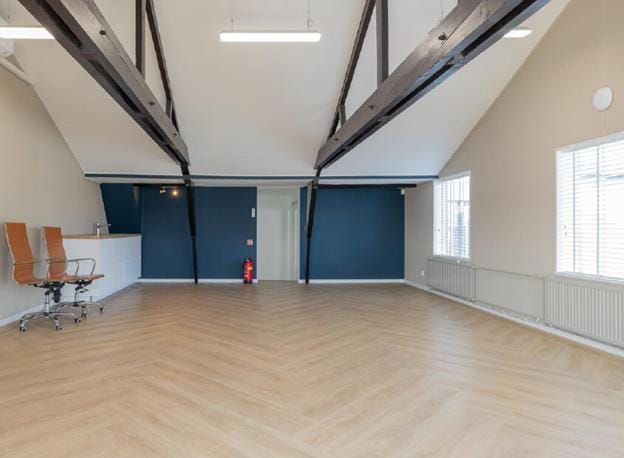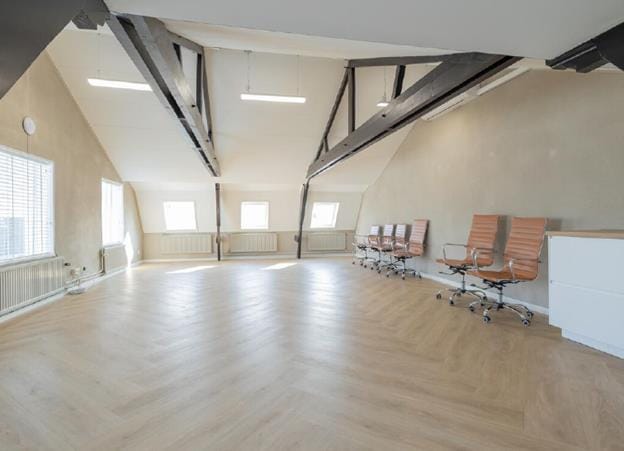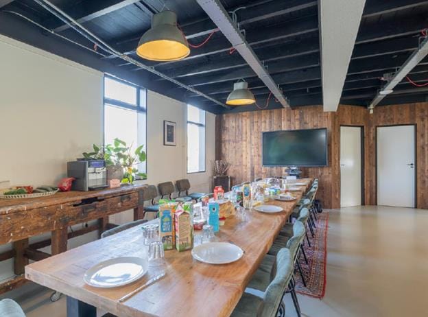 Het bedrijfsverzamelgebouw huisvest diverse soorten jonge bedrijven en de ruimten zijn hoogwaardig en duurzaam afgewerkt. Gietvloeren, glazen puien, oude houten balkenplafonds, LED verlichting, airconditioning, maar ook moderne toiletten, pantry's en niet geheel onbelangrijk goede wifi middels diverse
