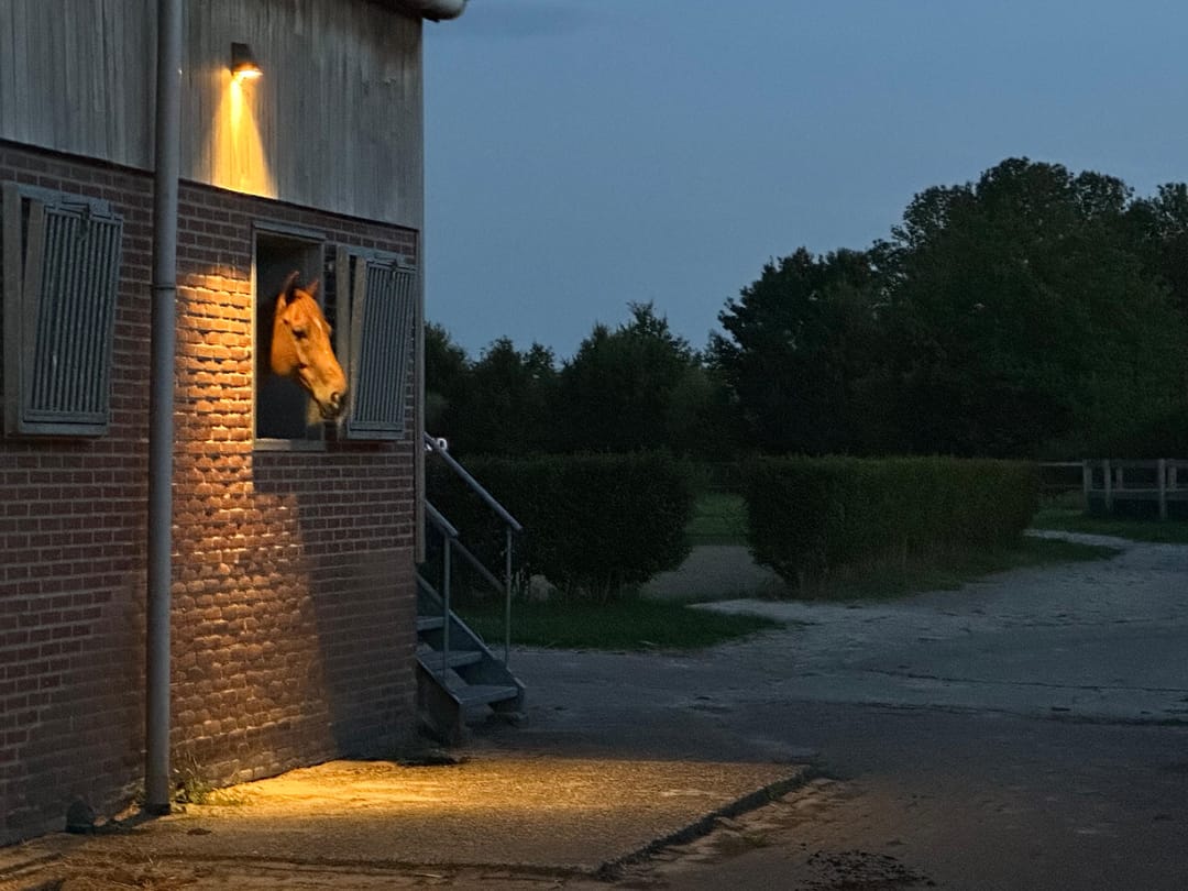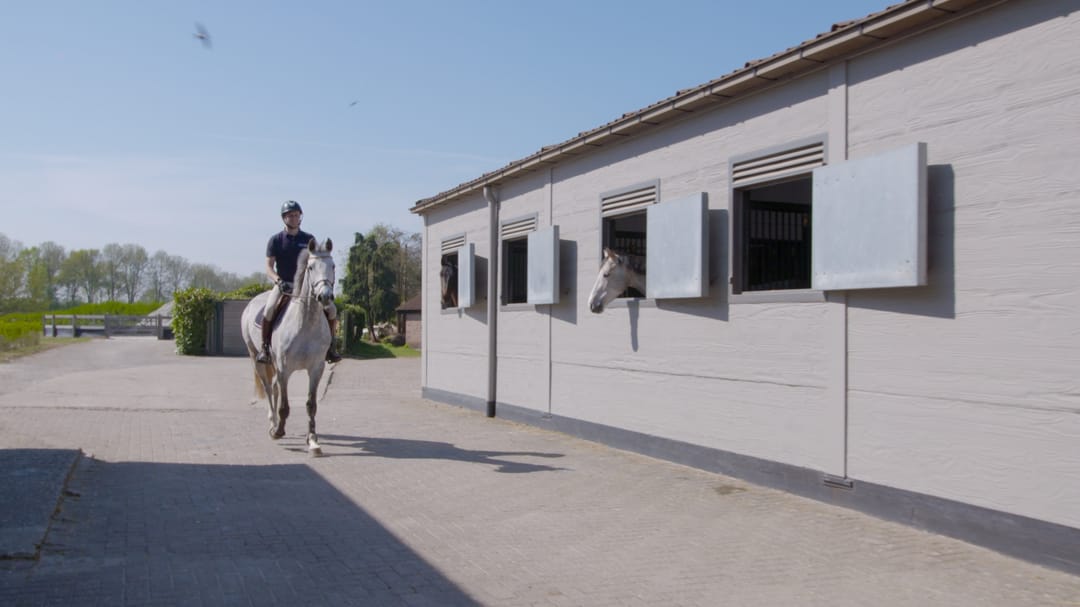 Deze stal is direct verbonden met de binnenrijbaan via een deur.
