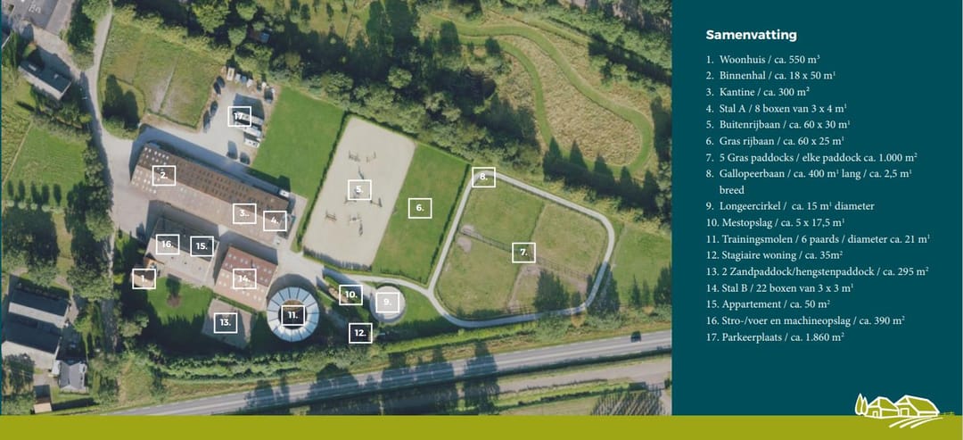 Een object als dit komt maar zelden op de markt. Deze hoogwaardige en volledig ingerichte paardenaccommodatie combineert functionaliteit, luxe en uitstraling op uitzonderlijke wijze. Alles is tot in detail ontworpen om te voldoen aan de hoogste eisen op het gebied van paardenhouderij, training en representatie. Een uniek aanbod voor de serieuze liefhebber of professional die op zoek is naar kwaliteit en klasse.