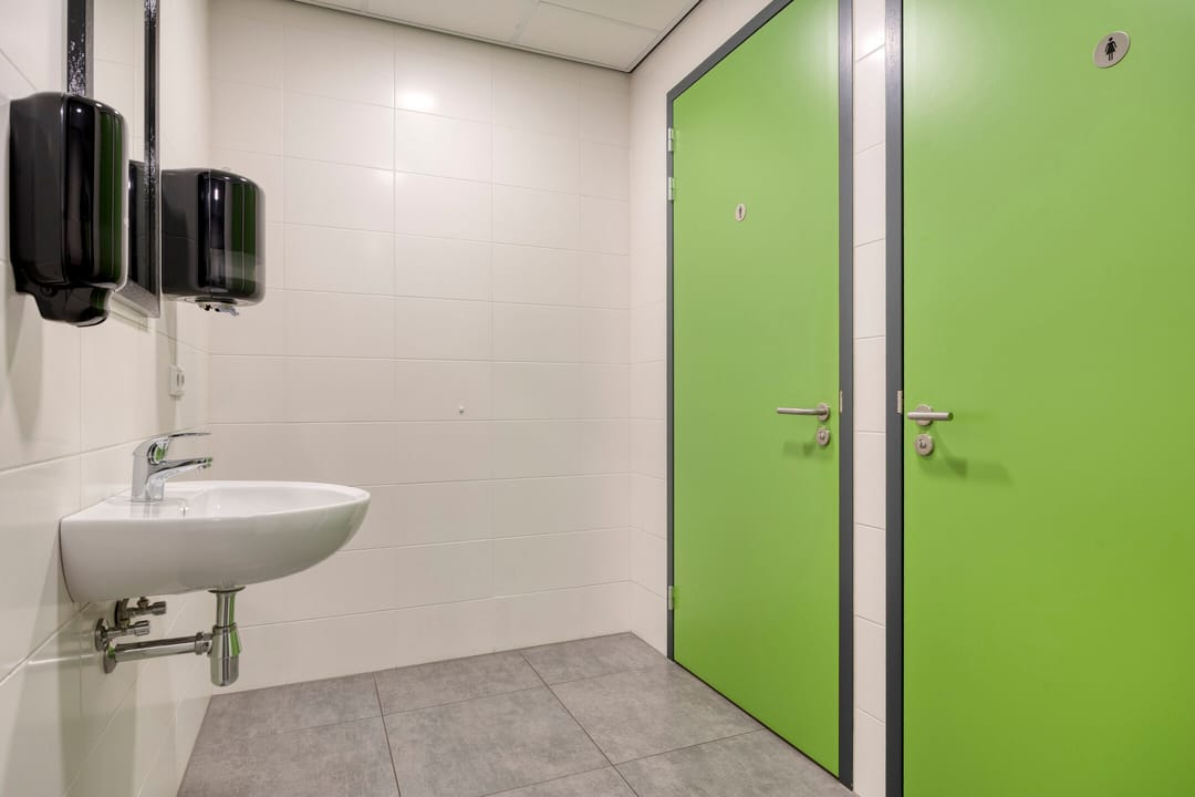 - Gevels: prefab betonplint (hoogte ca. 1,0 m) met opbouw van sandwichpanelen. Het kantoorgedeelte is afgewerkt met houtkleurige kunststof gevelbeplating en heeft een representatieve uitstraling.
