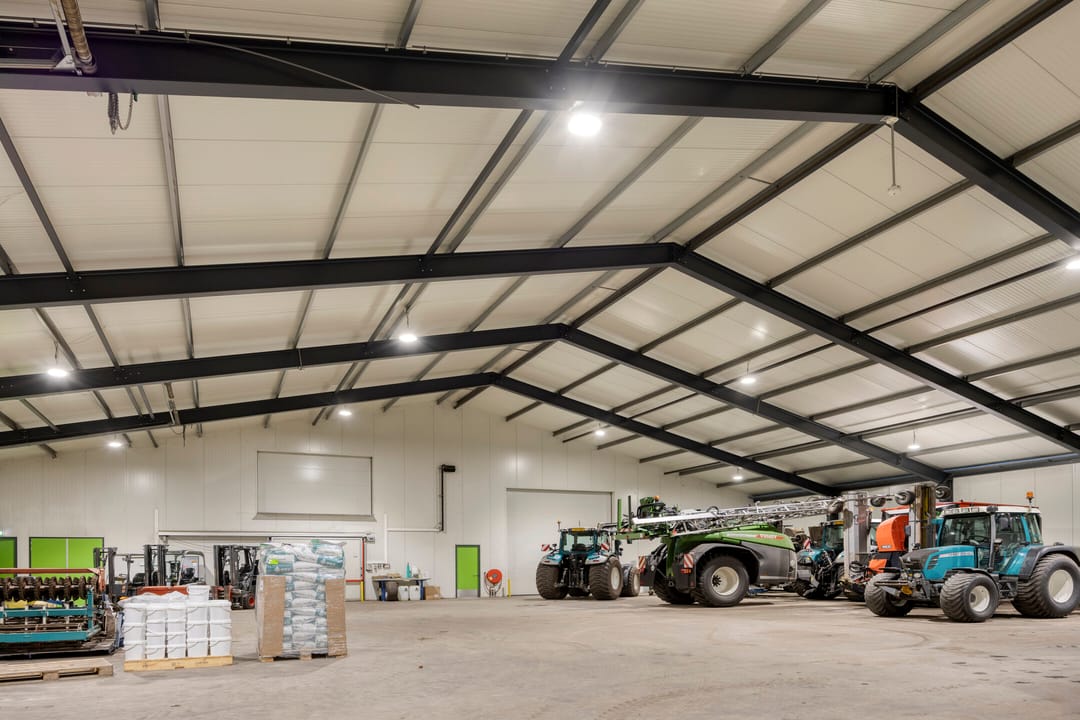 - Spantconstructie: stalen spanten met vrije overspanning.