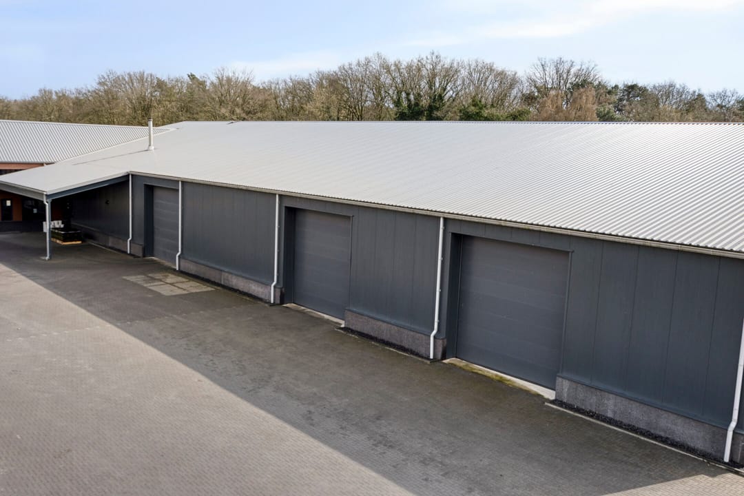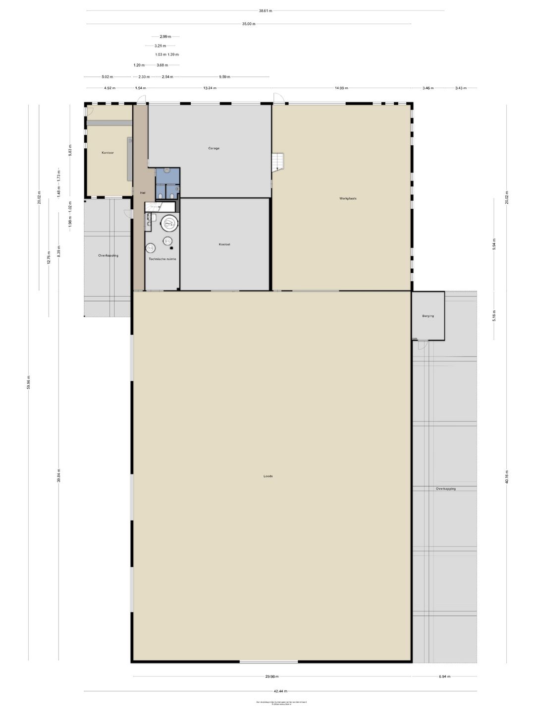 - Loods: circa 60 x 30 m (ca. 1.800 m²)