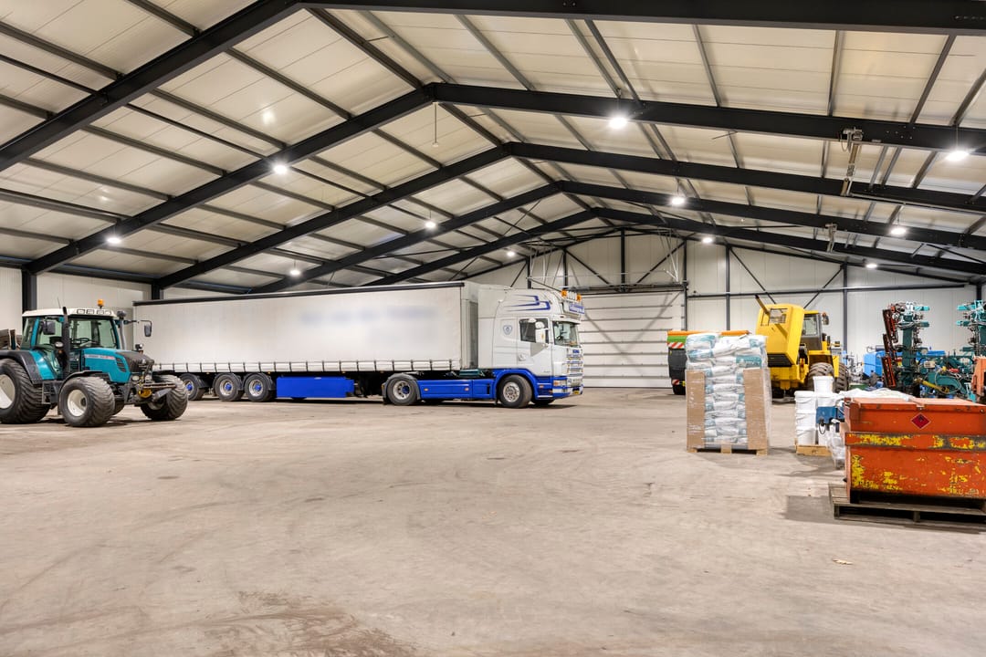 Erf en buitenvoorzieningen: Circa 5.000 m² erfverharding van klinkers. Twee bovengrondse dieseltanks met een totale capaciteit van 8.000 liter, geplaatst in een stenen gebouw met spouw en asbestvrije dakbedekking. Volledig omheind erf met hekwerk (ca. 2 m hoog). Elektrische schuifpoort met doorgangsdetectie. Wadi aanwezig.
