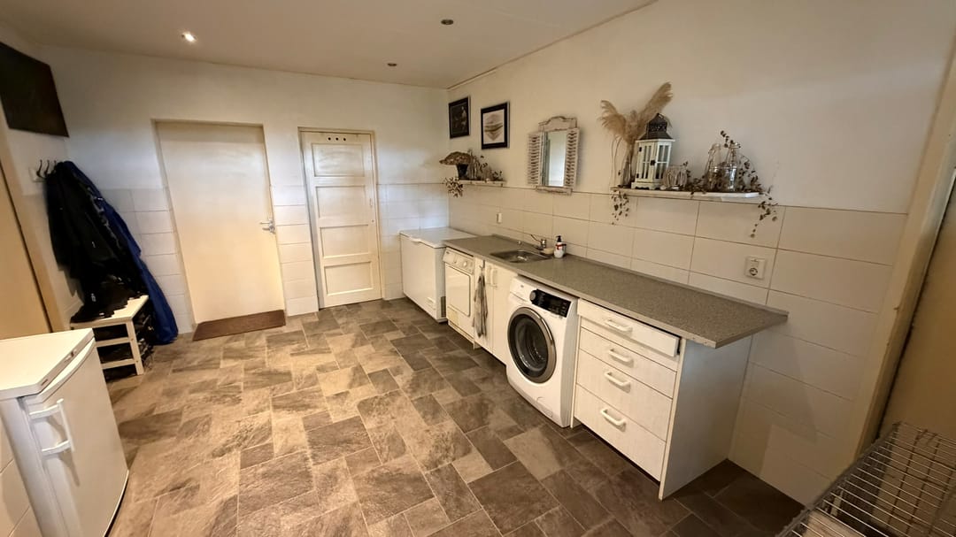De vrijstaande bedrijfswoning (ca. 175 m²) dateert uit ca. 1936 en is na de onderwaterzetting volledig herbouwd. Het buitenonderhoud is uitstekend; het interieur biedt een nette basis voor modernisering. De woning beschikt over een ruime veranda van ca. 35 m² en wordt verwarmd via een airco-installatie. Indeling: begane grond met woonkamer, woonkeuken, bijkeuken, slaapkamer met douche/toilet; eerste verdieping met overloop en 4 slaapkamers.