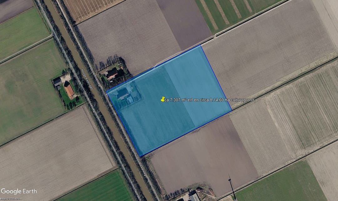 Gelegen in de vruchtbare Wieringermeer polder wordt dit complete akkerbouwbedrijf aan de Oosterkwelweg 21 te Wieringerwerf te koop aangeboden. Het object omvat een goed onderhouden bedrijfswoning, een domeinenschuur met koelcellen en zonnepanelen, een schuurkas en circa 8,15 hectare landbouwgrond van uitstekende kwaliteit — alles bij elkaar een totale oppervlakte van 8 hectare 87 are 70 centiare.