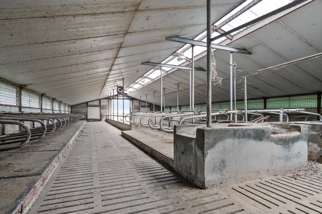 - Indeling: open ruimte met een gedeelte stalinrichting voor jongvee op betonroosters.