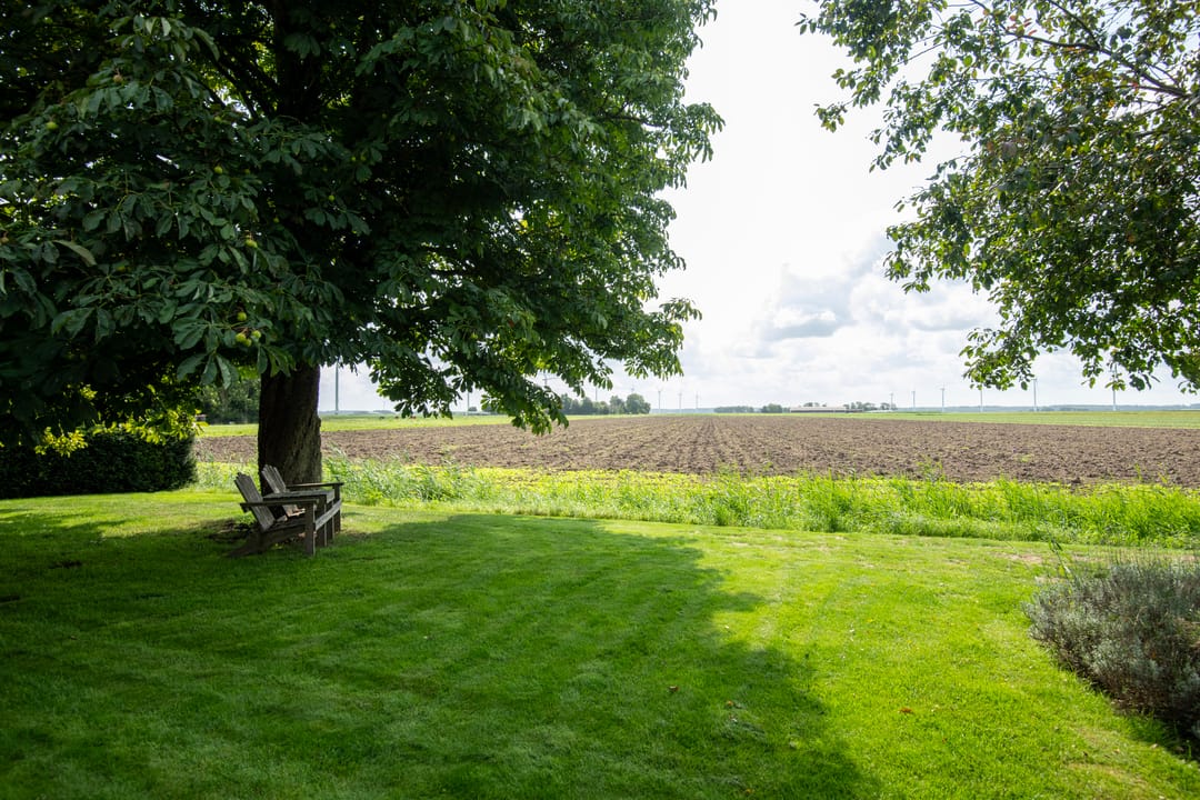 - de achtergelegen percelen cultuurgrond worden ontsloten via het bestaande bedrijfserf, samen met de aan verkoper verblijvende achtergelegen loodsen met ondergrond en erf.