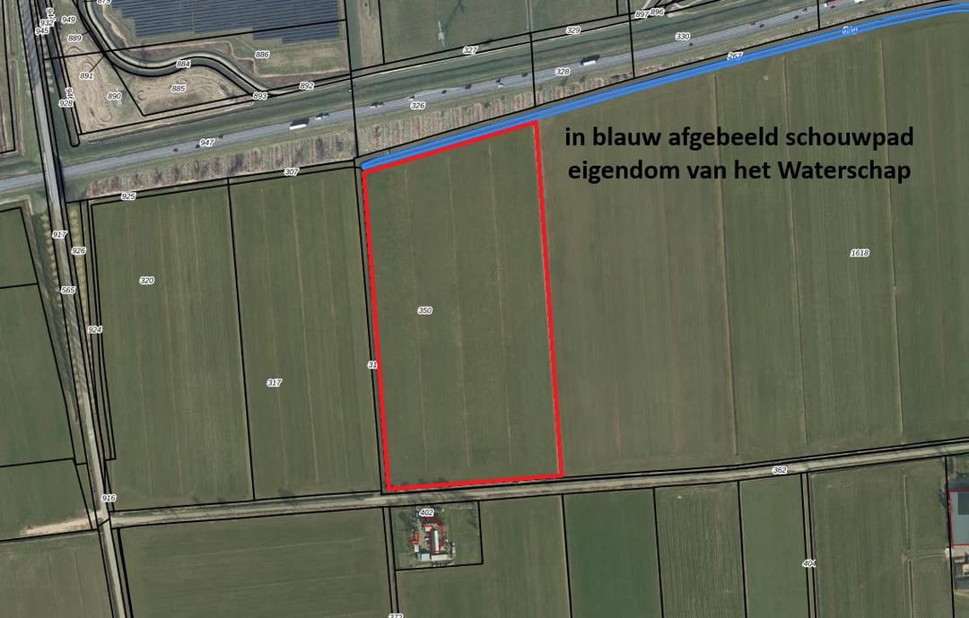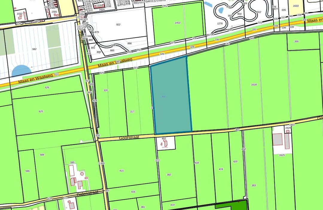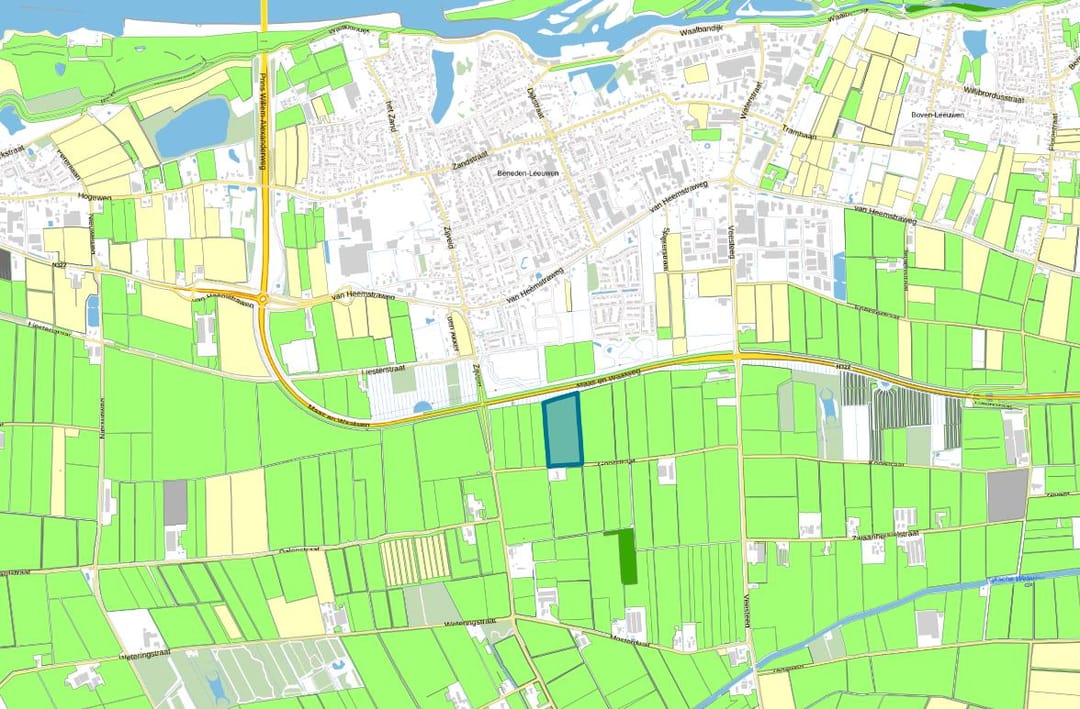 Betreft een mooi rechthoekig perceel goed grasland aan de Goorstraat te Beneden-Leeuwen, kadastraal bekend: Wamel, sectie N, nummer 350 groot 58.360 m2. Het perceel is goed ontsloten middels tweetal dammen op de Goorstraat en goed ontwaterd middels viertal akkers met pijpen onder de kopakkers door. Achterin het perceel ligt een strook schouwpad (ruim 4 m breed) eigendom van het Waterschap vanwege onderhoud aangrenzende A-watergang, deze strook kan wel mee worden gemaaid. Perceel wordt door verkoper ingezaaid met grasmengsel geschikt voor weiden en maaien. Perceel is belast met A-waterschapskeur.