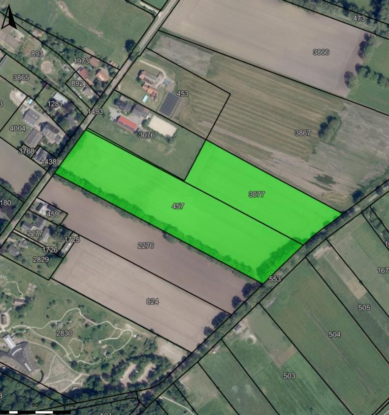 Een goed perceel vruchtbare zandgrond van bijna 4 hectare met een ontsluiting aan 2 openbare wegen.