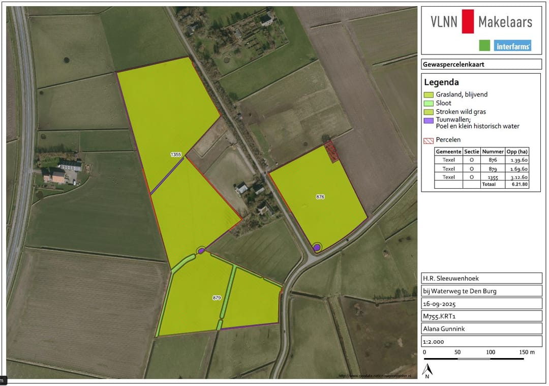 TE KOOP: ca. 6,2 ha cultuurgrond/blijvend grasland gelegen bij de Waterweg, hoek Westergeest, te Den Burg op Texel.