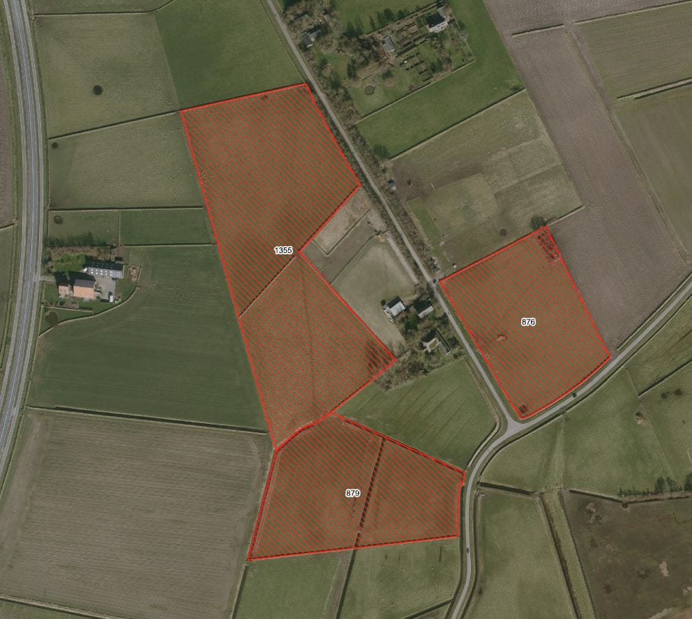 Feitelijk gebruik: grasland, de percelen zijn verpacht/in bruikleen (opgezegd per 1 april 2026)