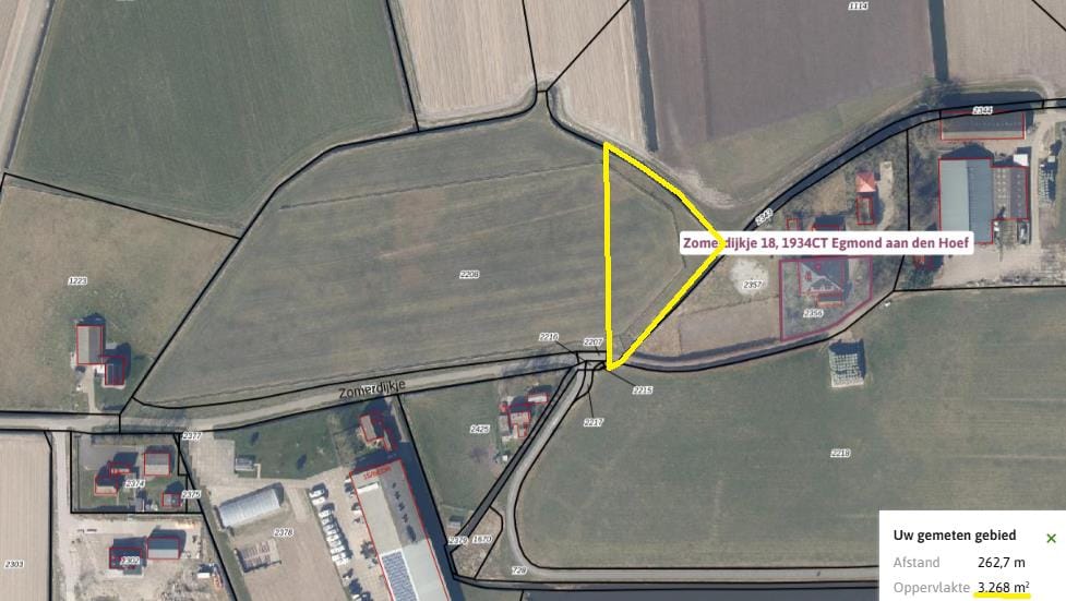 Een interessant gelegen, multifunctioneel perceel grasland aan het Zomerdijkje, tegenover nummers 15 en 17. Het object ligt binnen het open buitengebied met vrij uitzicht over het polderlandschap van Egmond aan den Hoef.