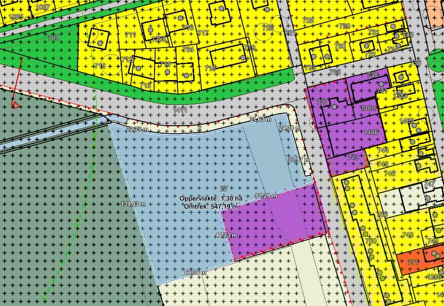 - Het perceel dient nog kadastraal ingemeten te worden, vandaar de circa