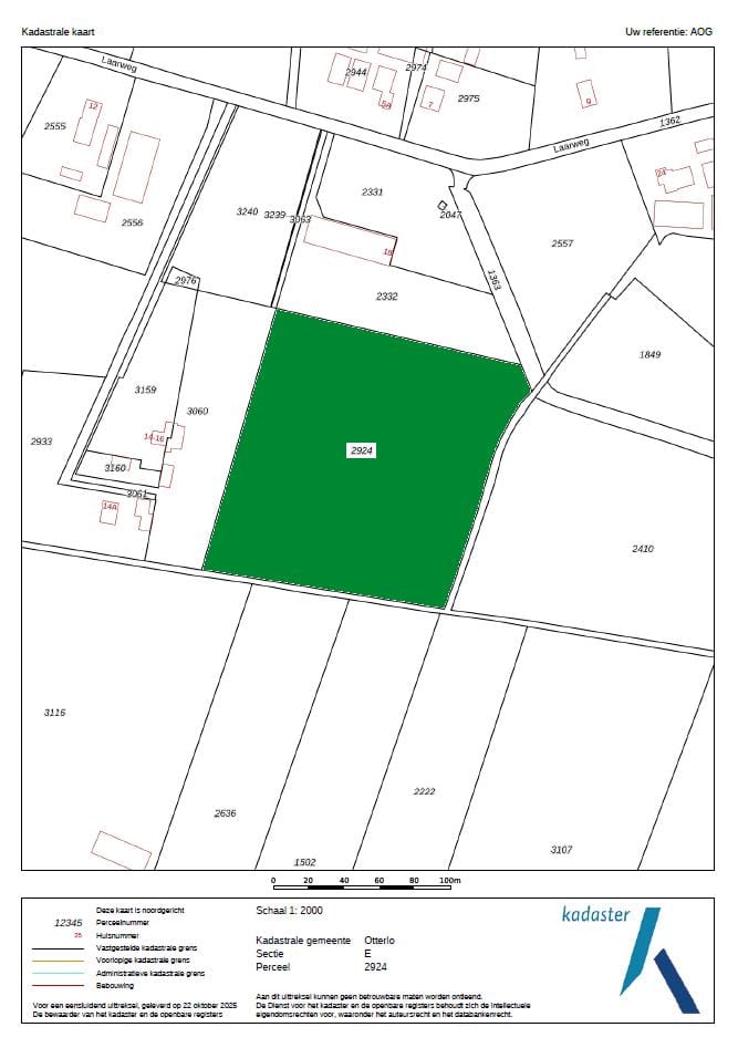 Kadastrale informatie: kadastraal bekend bij de gemeente Otterlo, sectie E, nummer 2924, groot ca. 21.210 m².