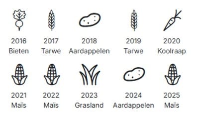Het dijkperceel en grasland is altijd al in gebruik als akkerrand en grasland. Het perceel cultuurgrond tegen de Bosseweg aan is in gebruik als bouwland. De afgelopen jaren zijn de volgende gewassen op het bouwland geteeld: bieten, tarwe, aardappelen, koolraap, maïs en grasland.