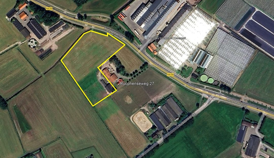 Op een klein deel van een perceel is een bouwblok aanwezig van ca. 950 m² (zij bijlage met blauwe arcering) ten behoeve van enkele agrarische bedrijfsgebouwen. Nu is daar een eenvoudige open frontloods met inpandige berging en een kleine open berging aanwezig. Dit bouwvlak staat geheel op zichzelf en het object staat ook geheel los van de voorgelegen woning met ondergrond op huisnummer 27 en van die oprit naar die woning kan dan ook geen gebruik gemaakt worden.