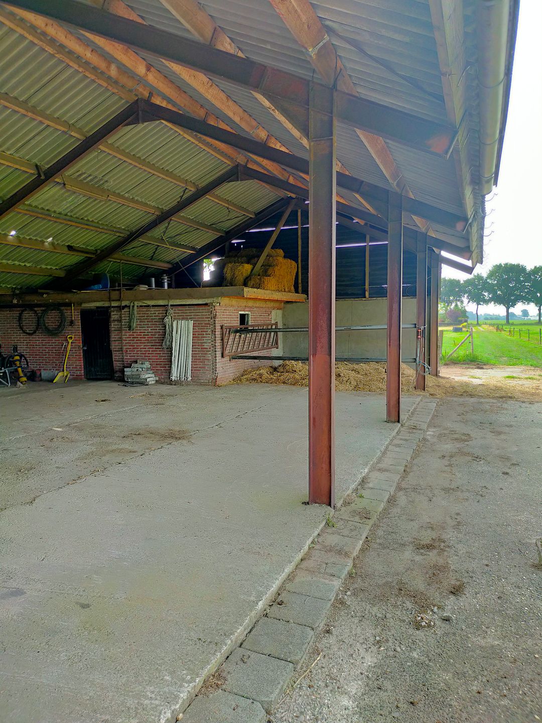 Opgetrokken met stenen muur, open front met 4 open hokken/stallen. De gebouwen zijn eenvoudig van aard en inrichting en behoeven nog enige aanpassing.