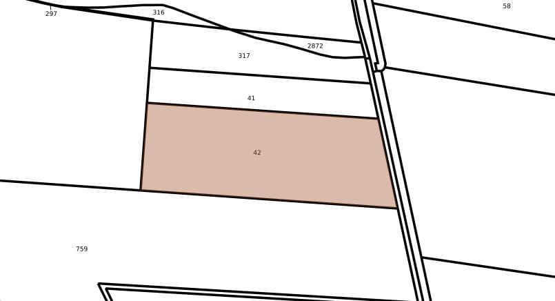 Tussen perceel 41 en 42 bevindt zich een droge scheiding. Verkoper laat een grensreconstructie uitvoeren door het Kadaster zodat exact duidelijk is waar de kadastrale grens zich bevindt. Voorafgaand de juridische levering zal de kadastrale grens fysiek uitgezet zijn door het Kadaster.