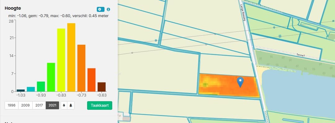 Het perceel is gedraineerd in het najaar van 2017 waarbij de afwatering plaats vindt op de sloot aan de Lange Reeweg. De drainagebuizen liggen om de 10 meter met een draindiepte van ca. 100 cm. De eindbuizen zijn goed onderhouden en de drainage is nog functioneel. Wanneer nodig zijn de drainagebuizen ook doorgespoten.